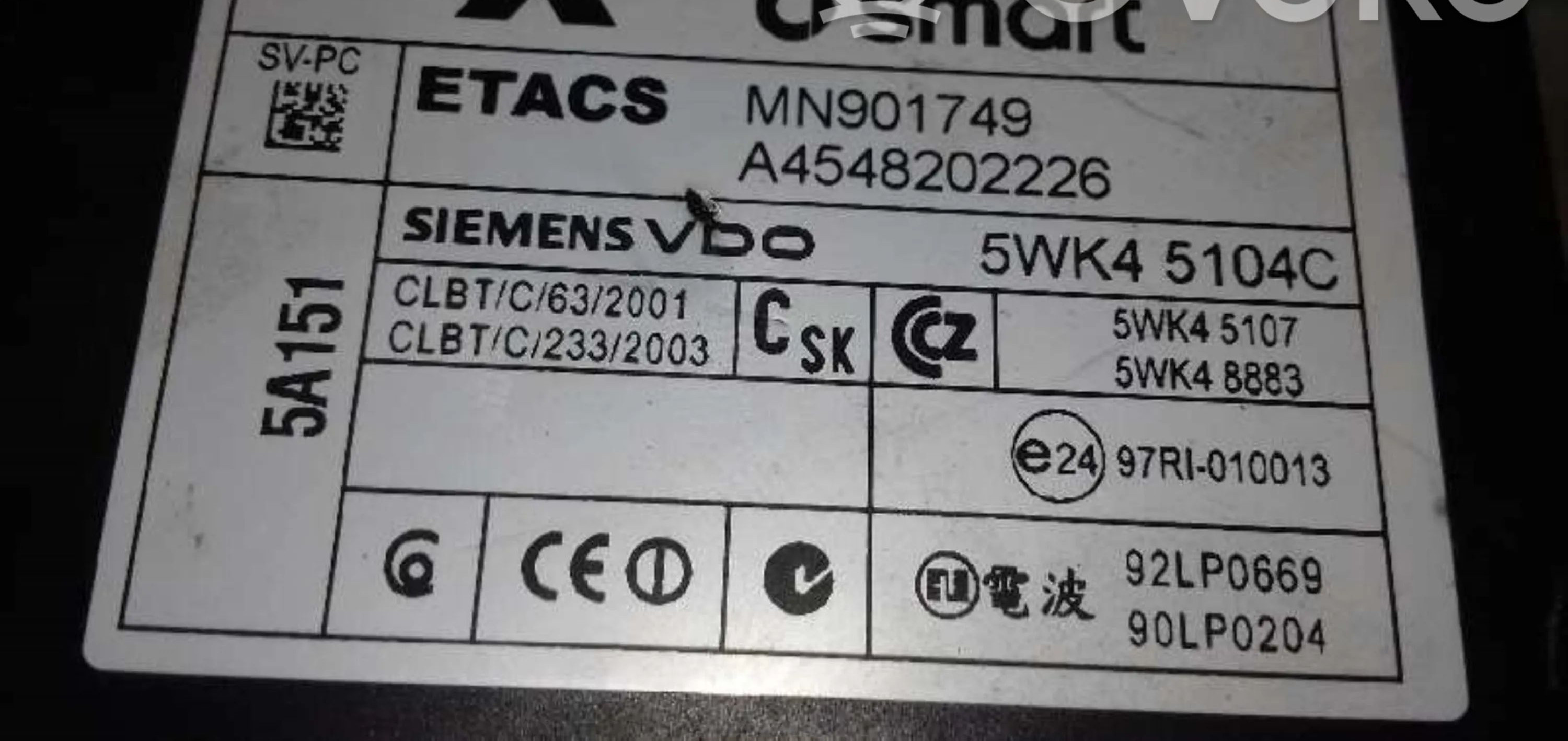 Блок предохранителей 5WK548202226 Smart ForFour I