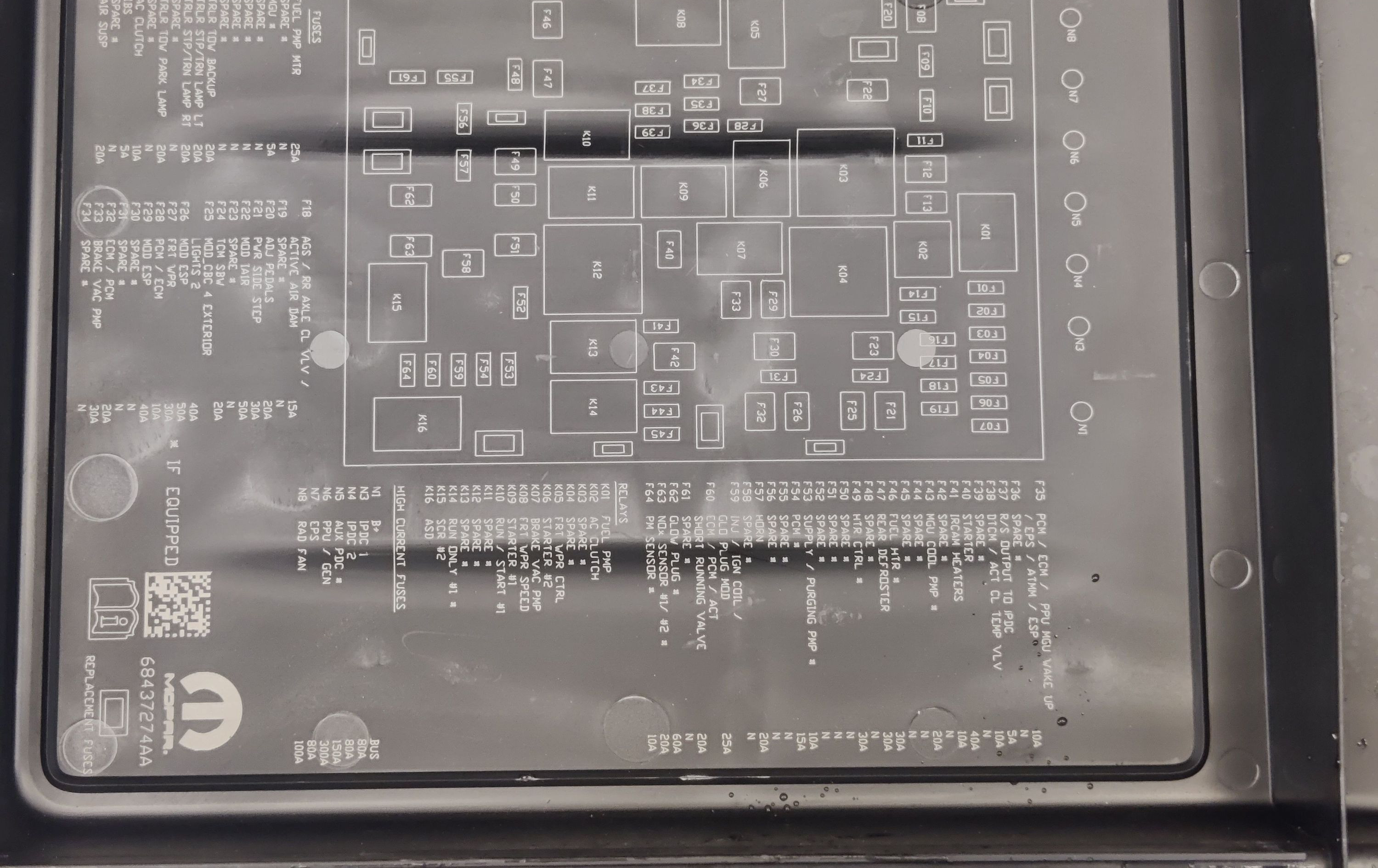 Блок предохранителей 68430150AA, 68437274AA Ram 1500