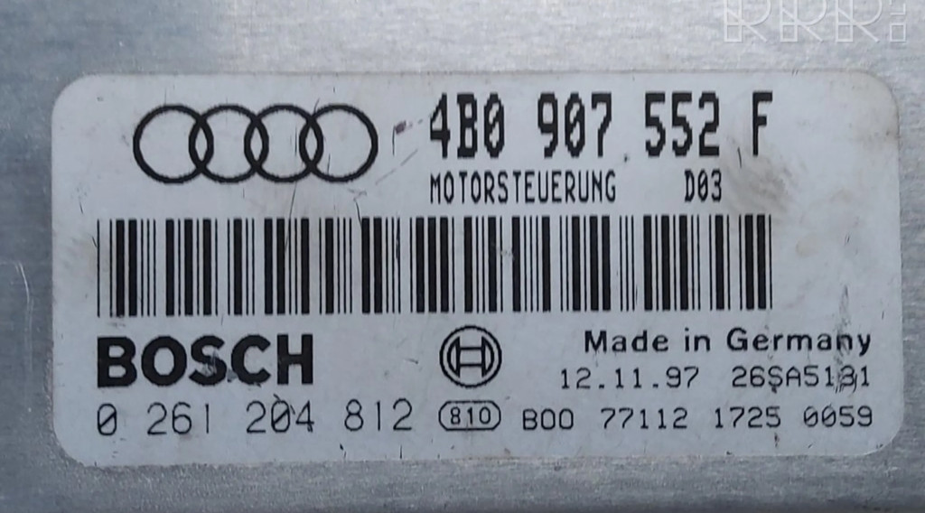 Блок управления двигателем Блок управления 4B0907552F, 0261204812 Audi A4 S4 B5 8D