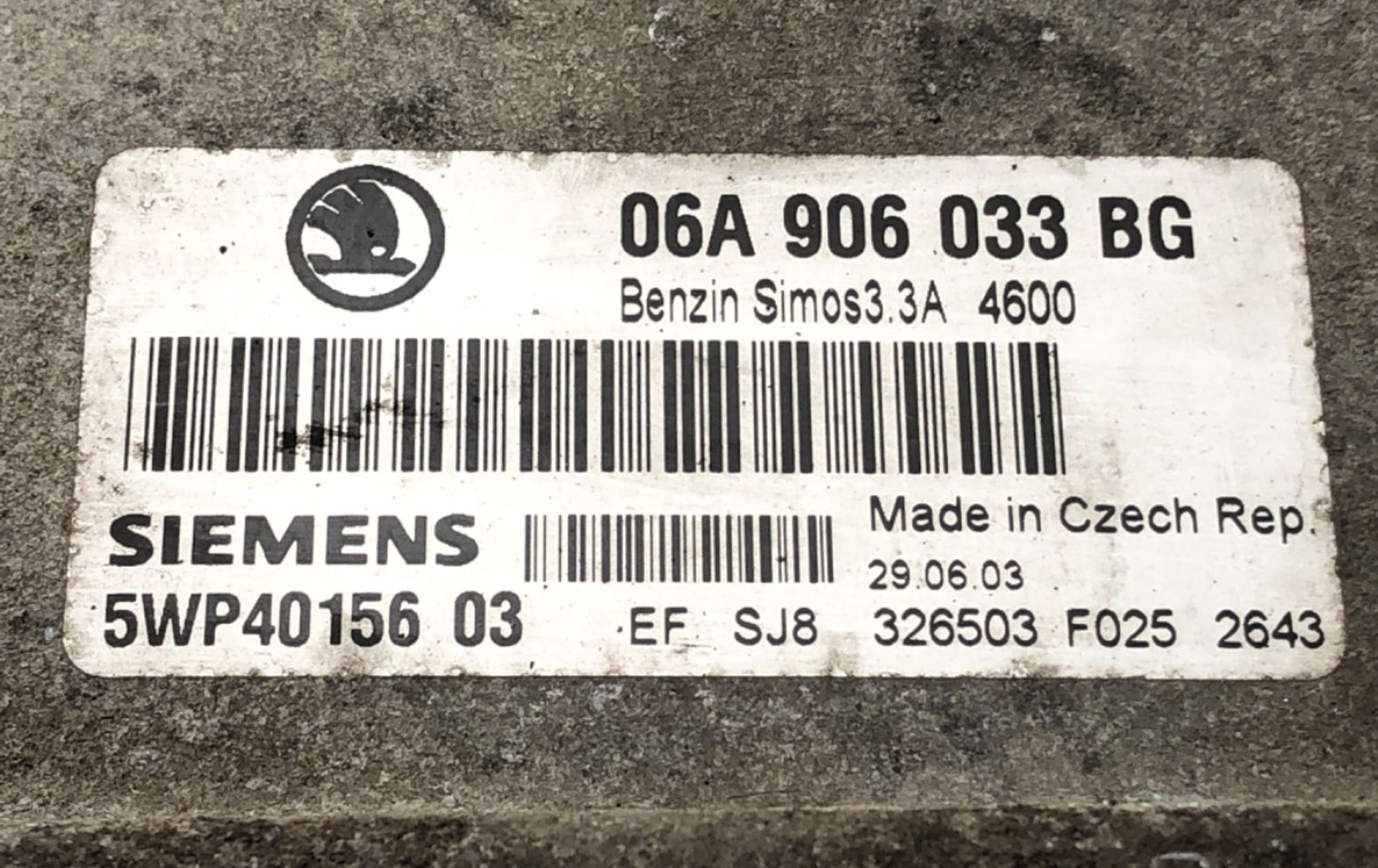Блок управления двигателем Блок управления 06A906033BG Skoda Octavia Mk1 (1U)