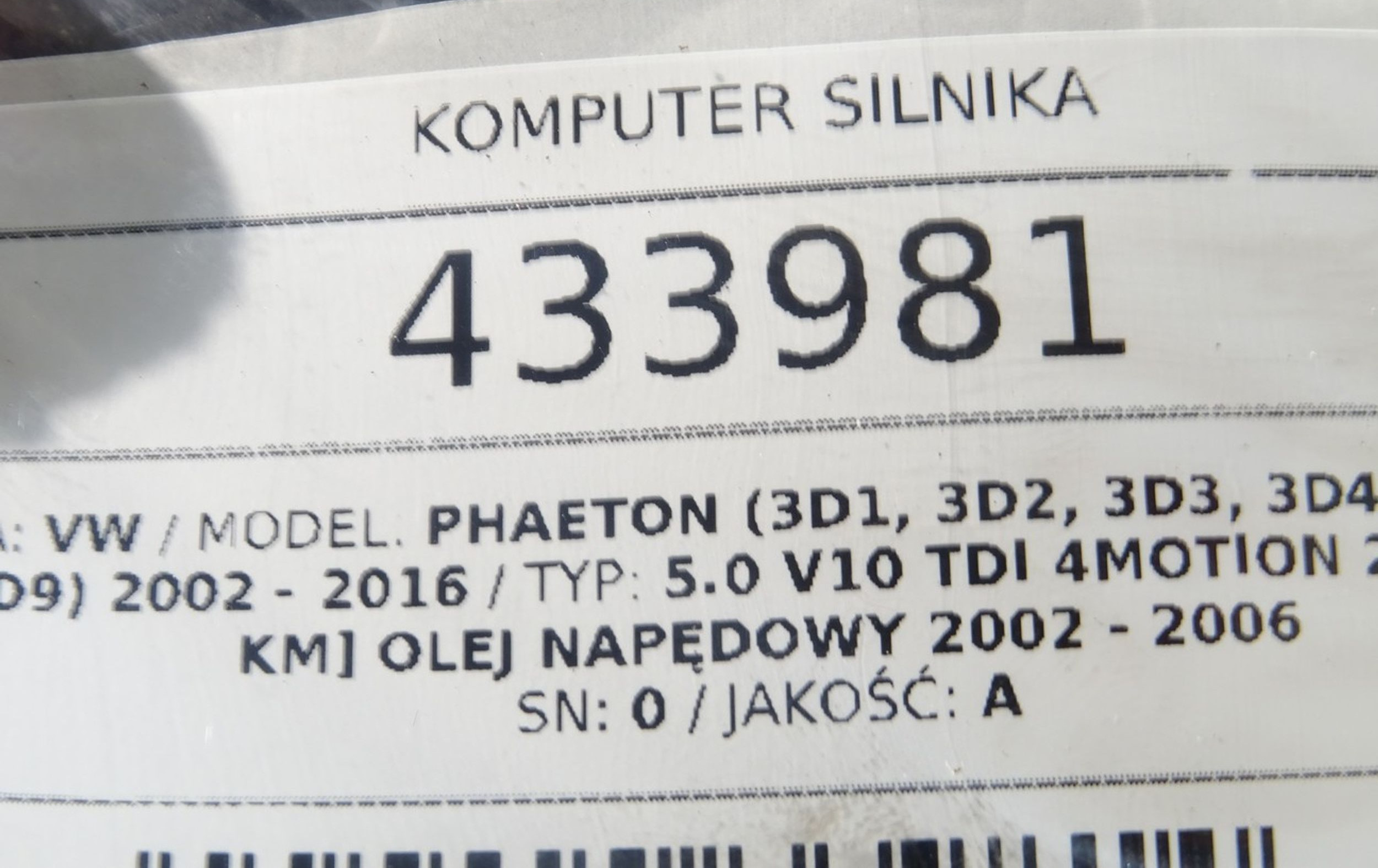 Блок управления двигателем Блок управления 070906016B Volkswagen Phaeton
