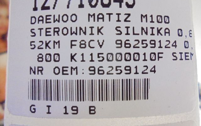 Блок управления двигателем Блок управления 96259124, 96259124 Chevrolet Matiz