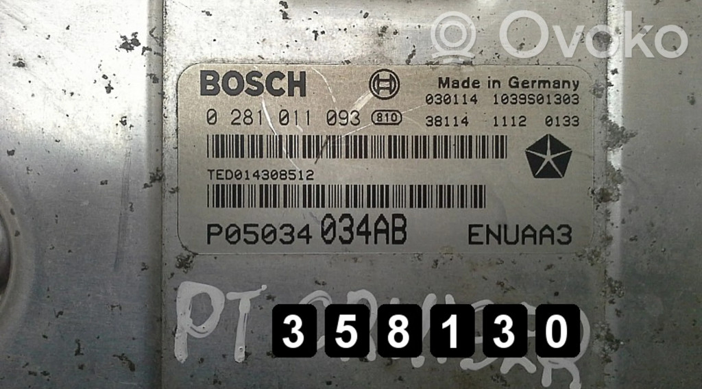 [358130]Kompiuteris | 2002 CHRYSLER PT CRUISER ECU SET 2200CRD 0281011093 P05034034AB | 2200crd 0281011093 p05034034ab