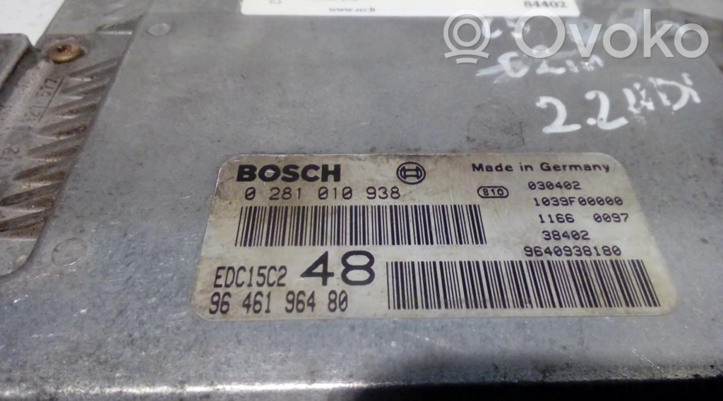 Блок управления двигателя 0281010938, 9646196480 Citroen C5