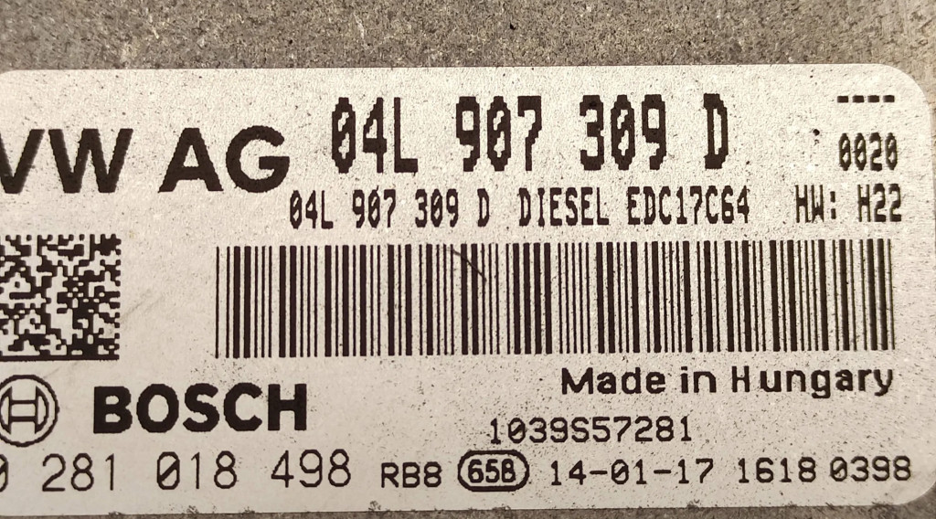 Блок управления двигателя 04L907309D, 0281018498 Skoda Octavia Mk3 (5E)
