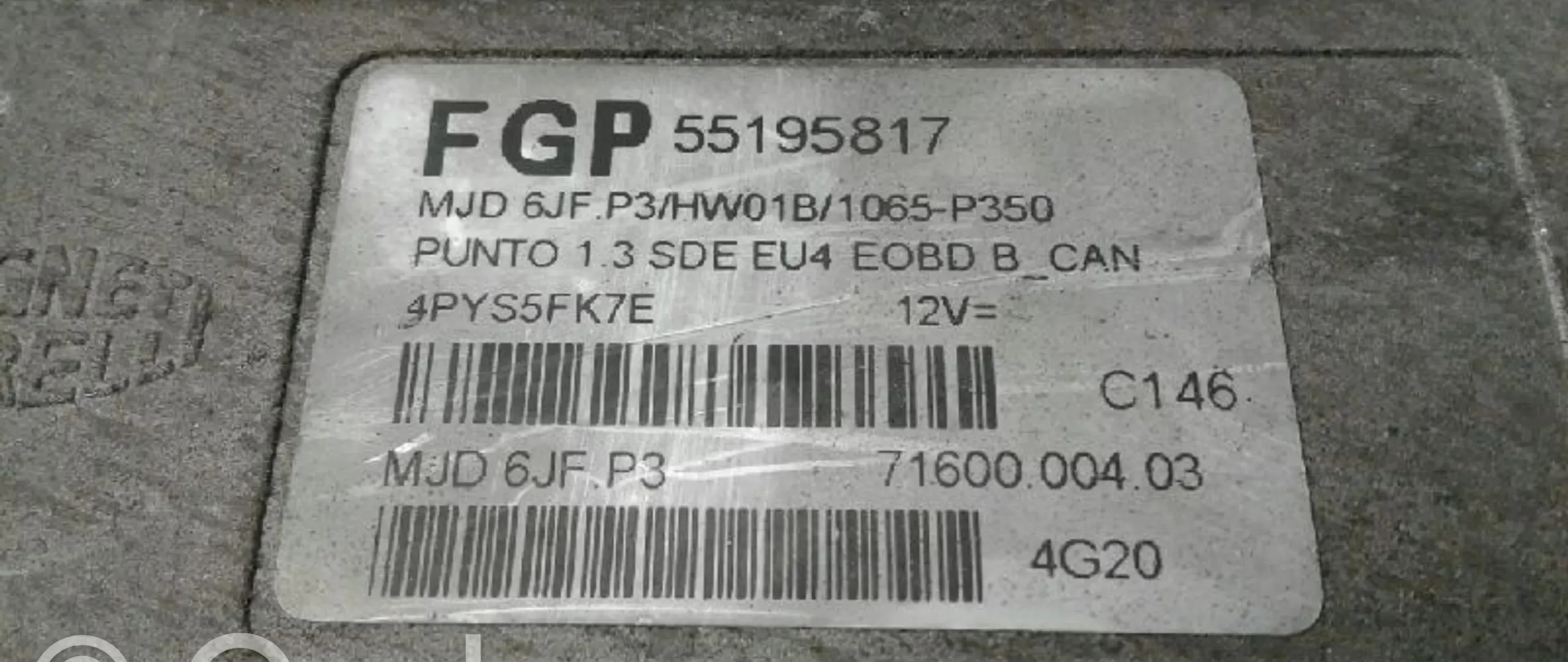Блок управления двигателя 0055195817 Fiat Punto Evo