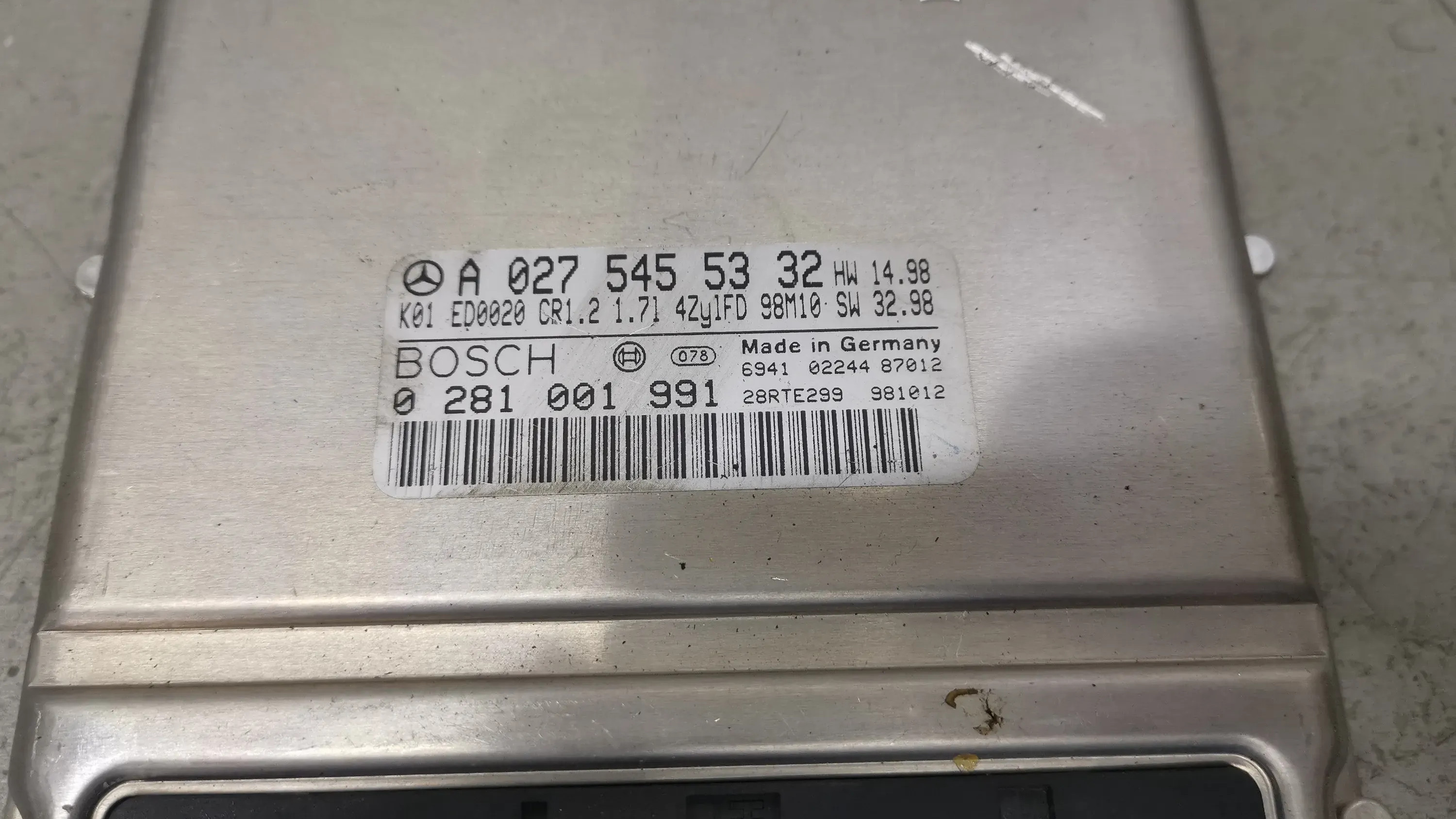 Блок управления двигателя A0275455332, 0281001991 Mercedes-Benz A W168