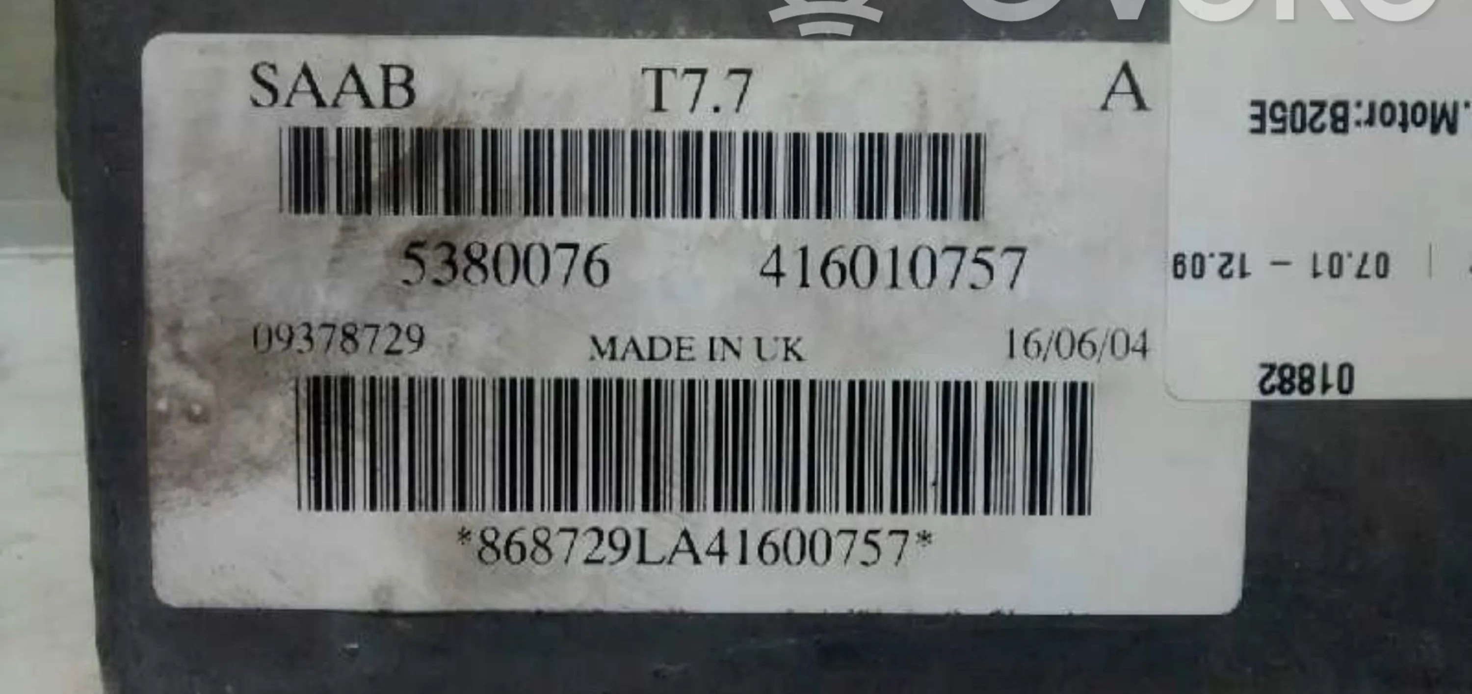 Блок управления двигателя 093787295380076, CENTRALITAMOTORUCE Saab 9-5