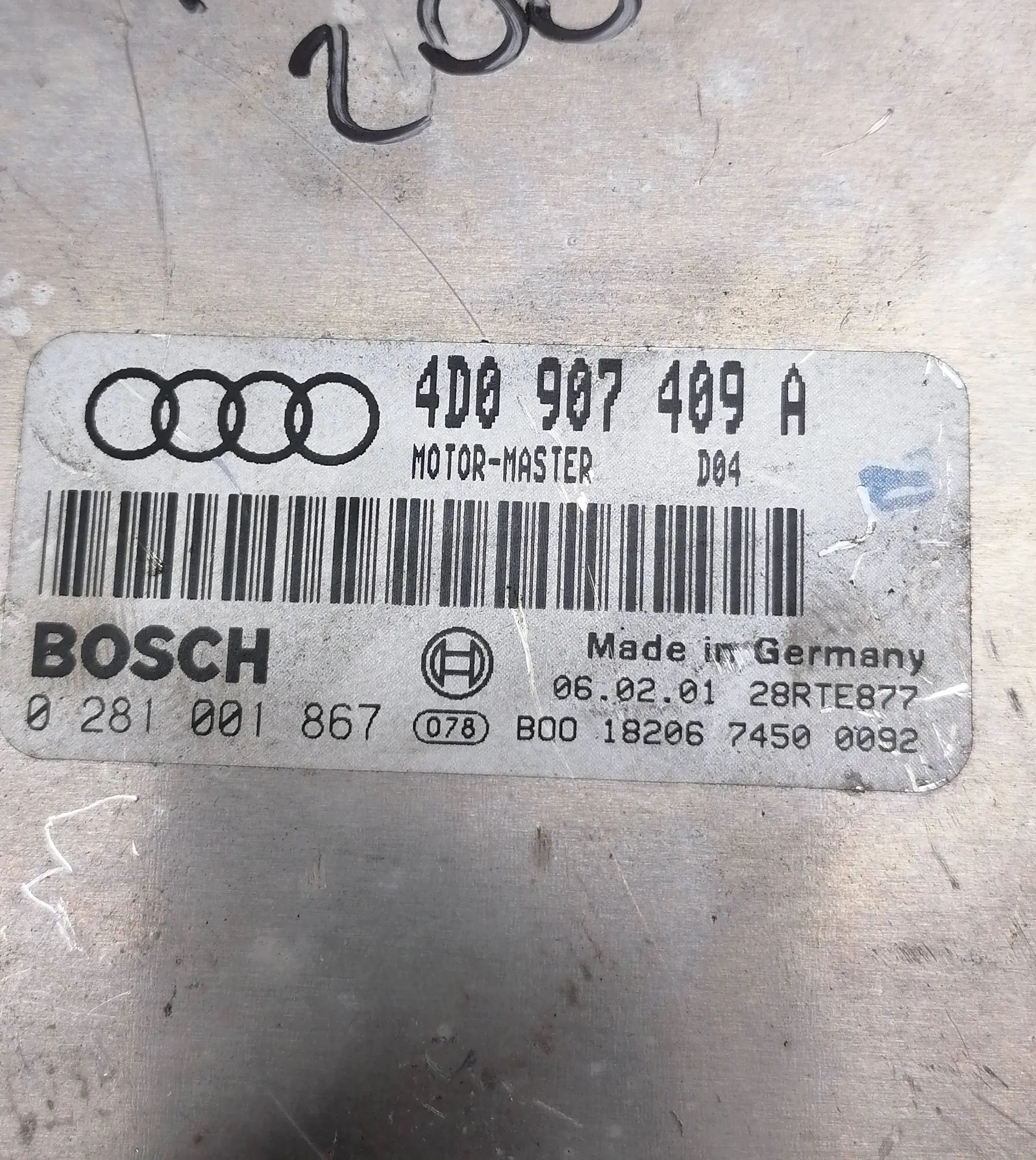 Блок управления двигателя 4D0907409A, 0281001867 Audi A8 S8 D2 4D