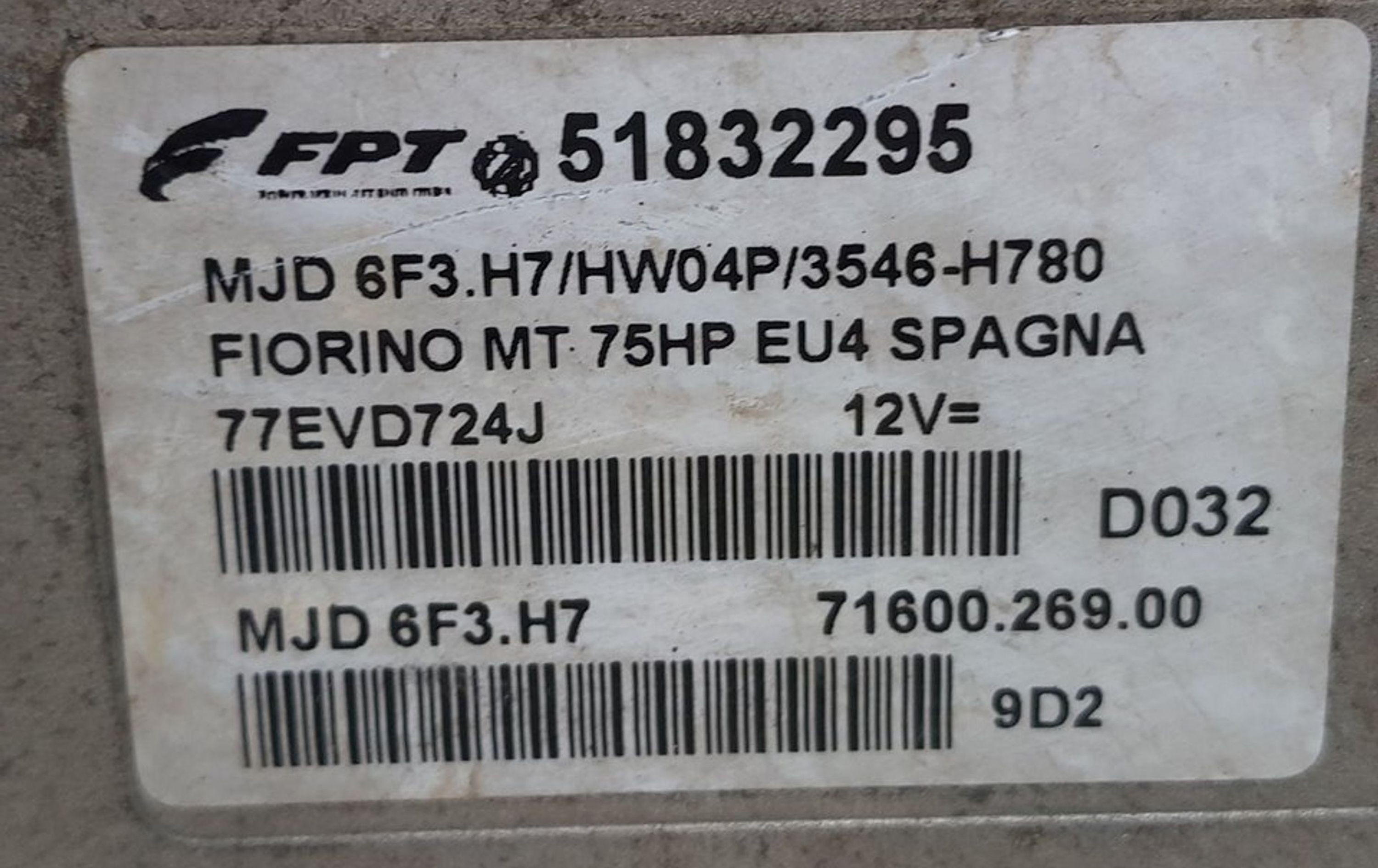 Блок управления двигателя 51832295, 178301 Fiat Qubo