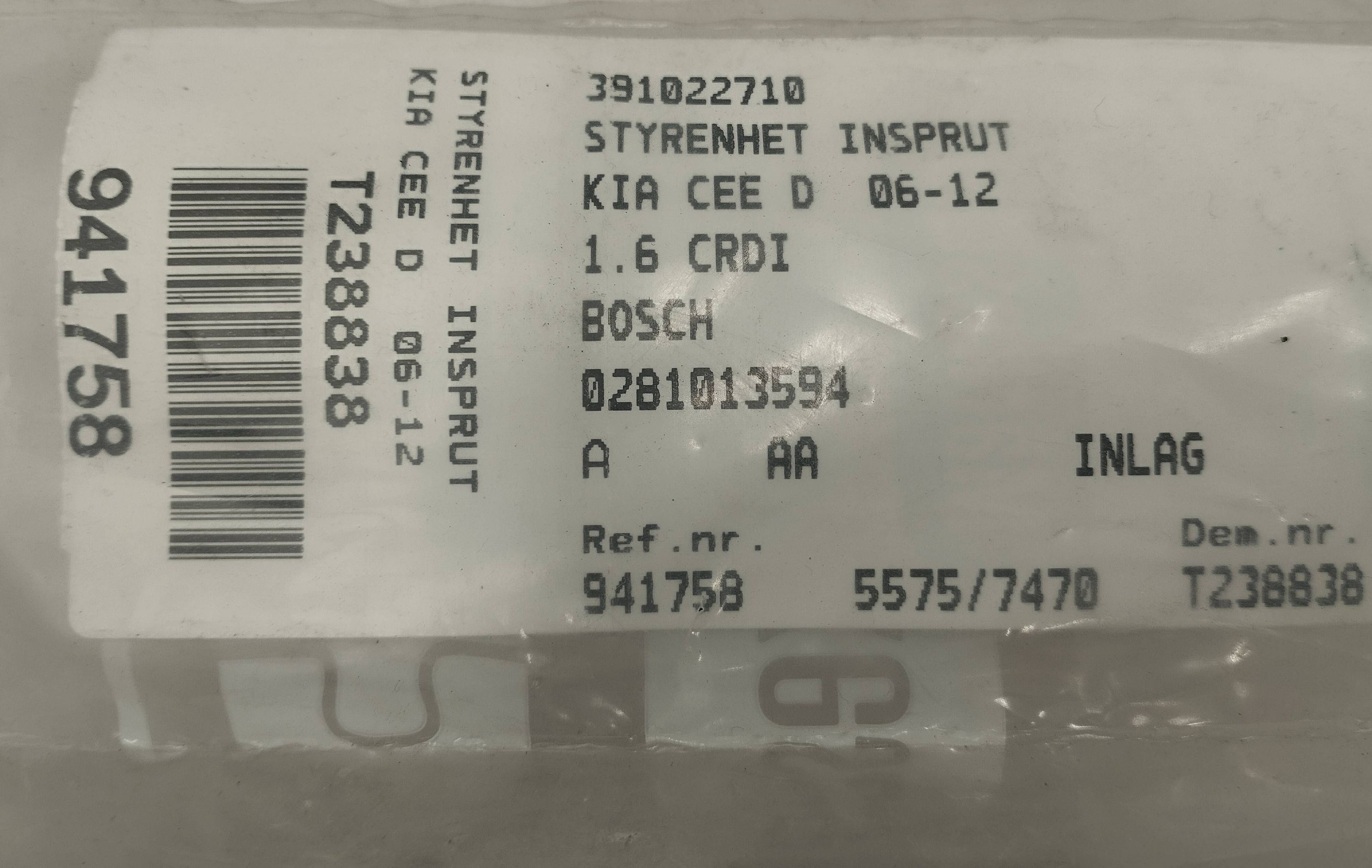 Блок управления двигателя 1039S23197, 391022A710 KIA Ceed