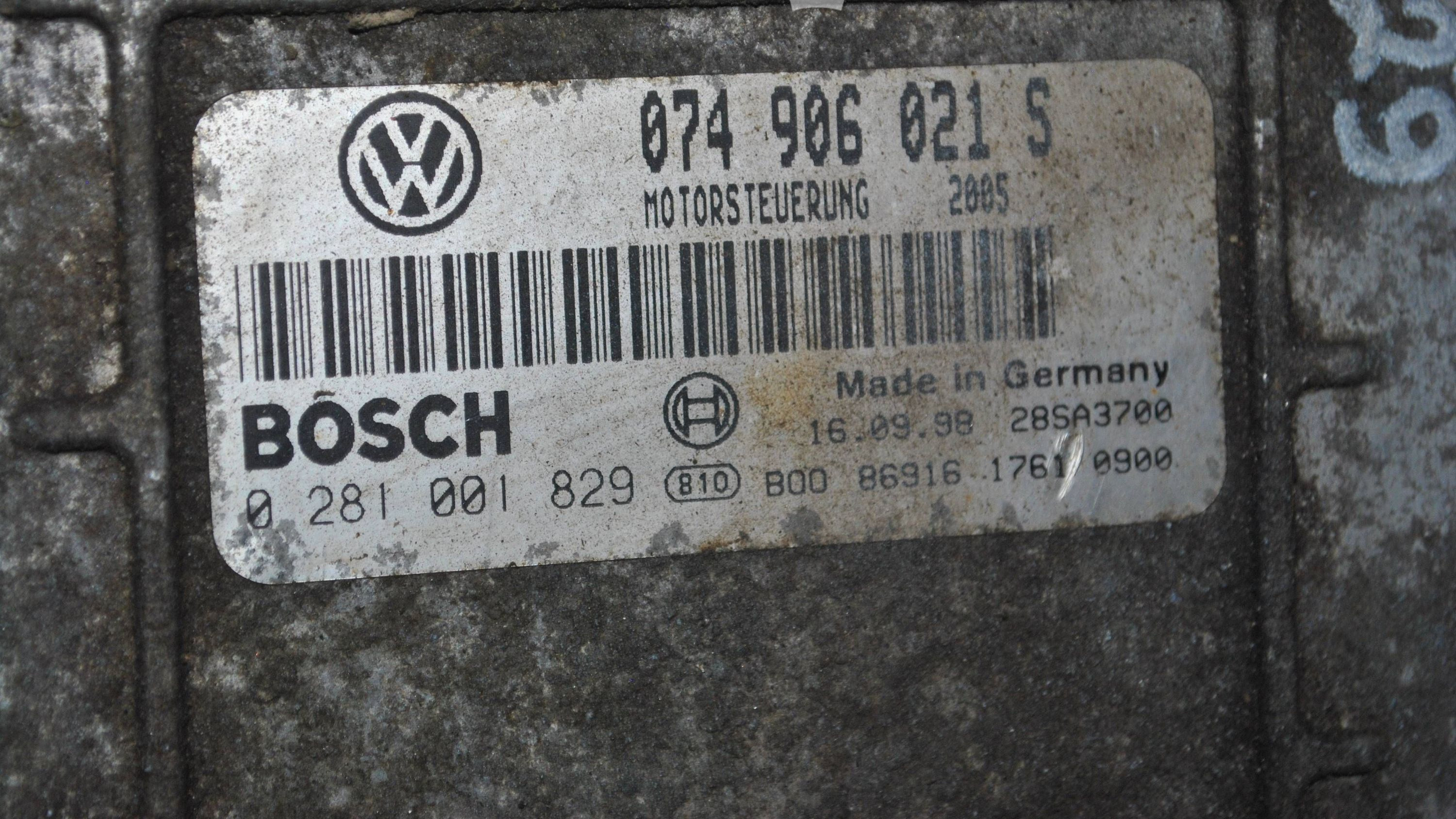Блок управления двигателя 074906021S, 28SA3700 Volkswagen Transporter - Caravelle T4