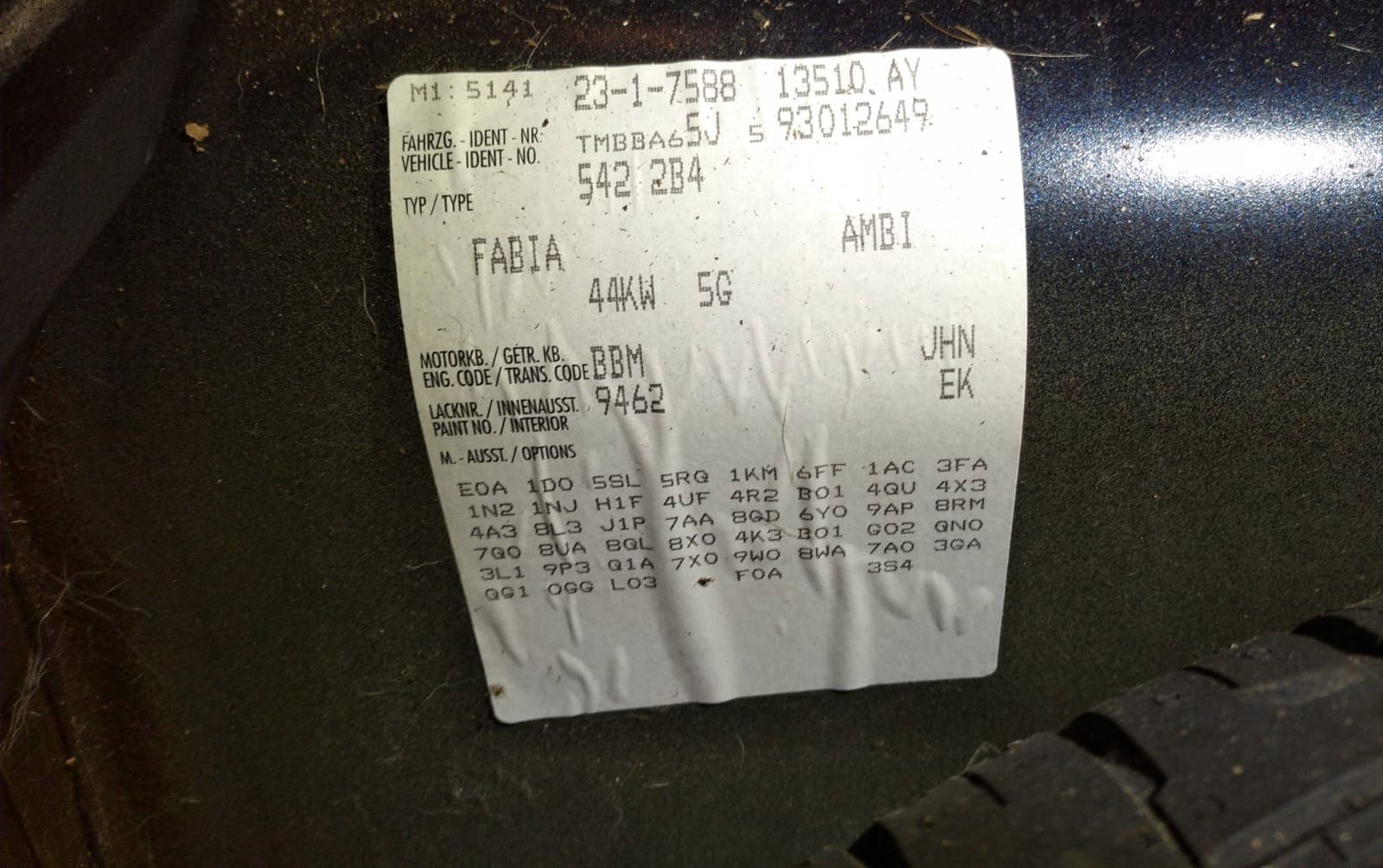 - Модель: Fabia Mk2 (5J)
