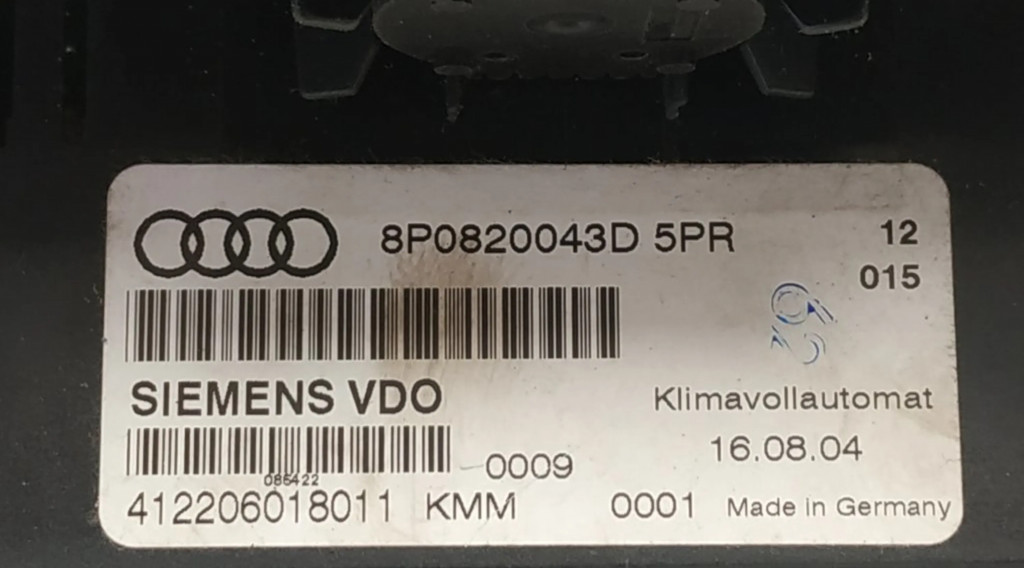 Блок управления климат-контролем 8P0820043D, 412206018011 Audi A3 S3 8P