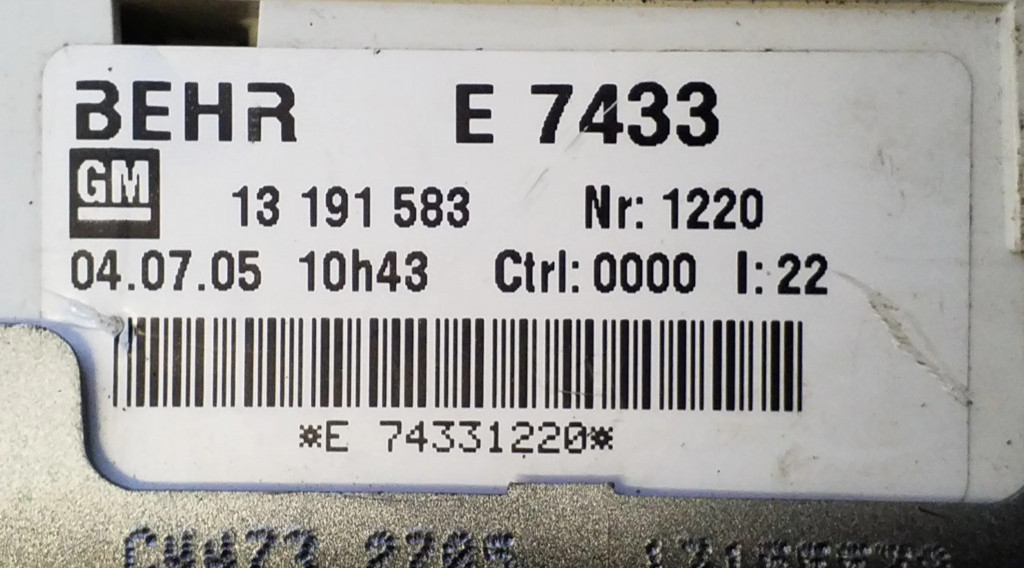 Блок управления климат-контролем 13191583, E7433 Opel Meriva A