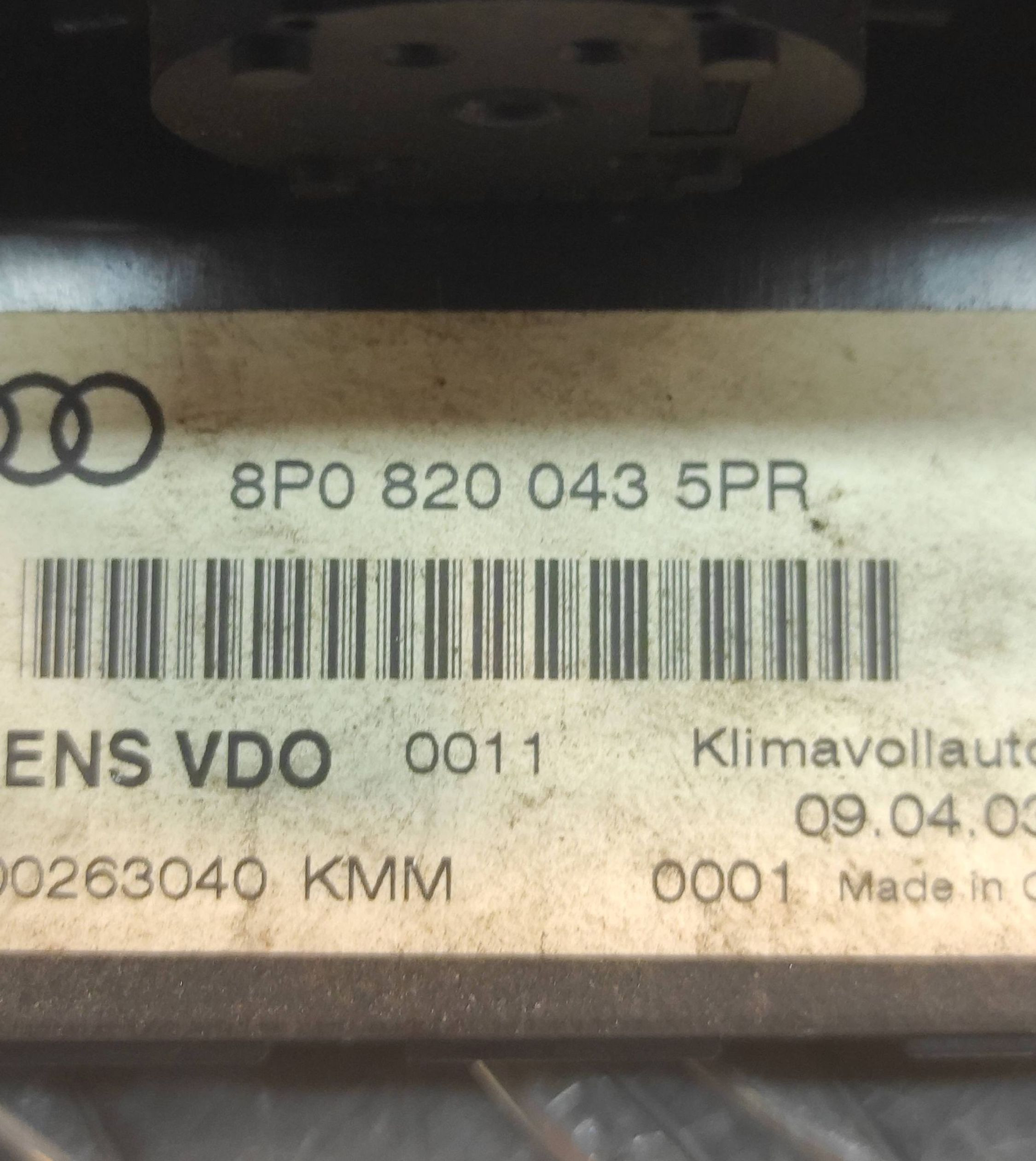 Блок управления климат-контролем 8P0820043, 0263040 Audi A3 S3 8P
