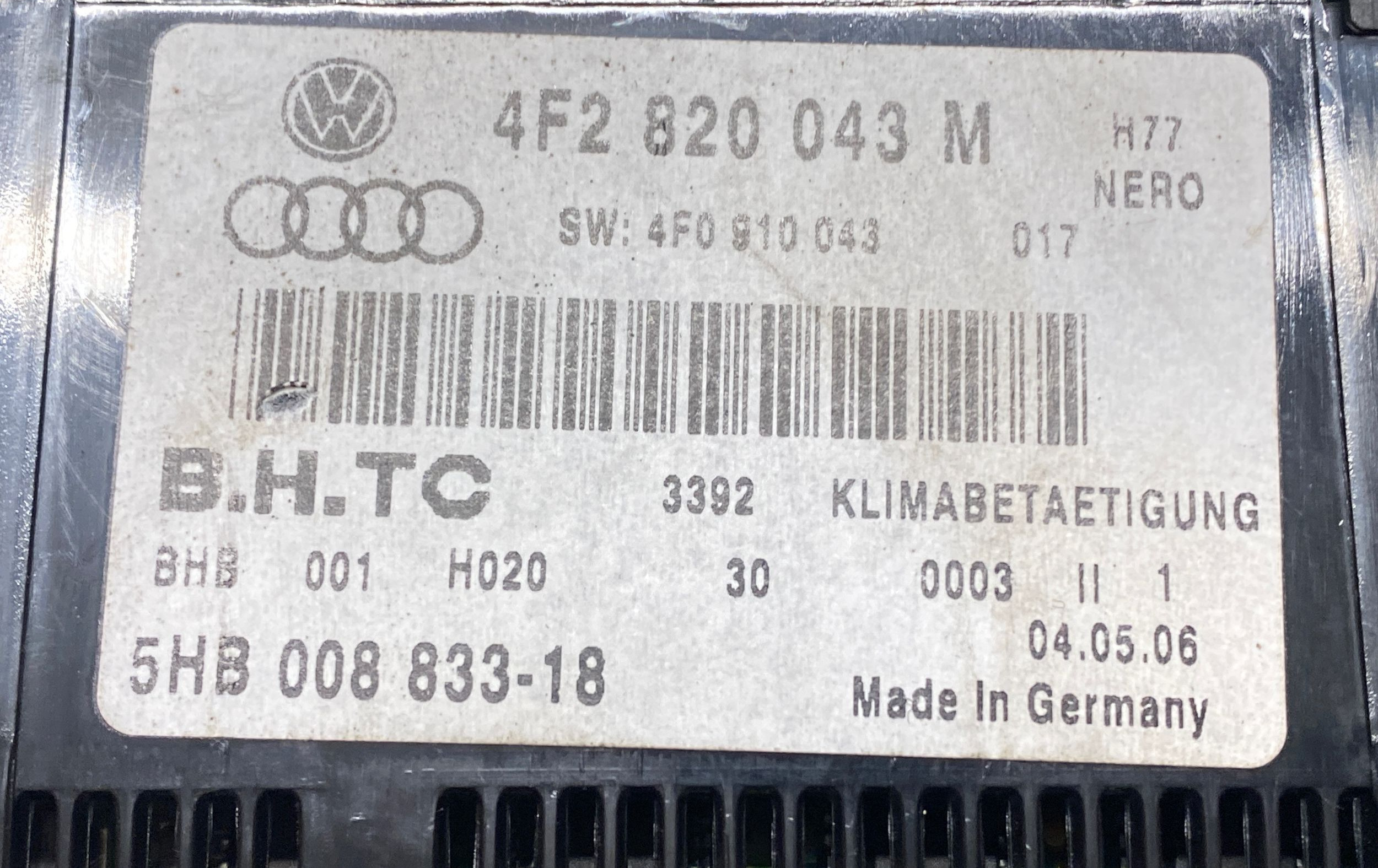 Блок управления климат-контролем 4F2820043M, 4F0910043 Audi A6 S6 C6 4F