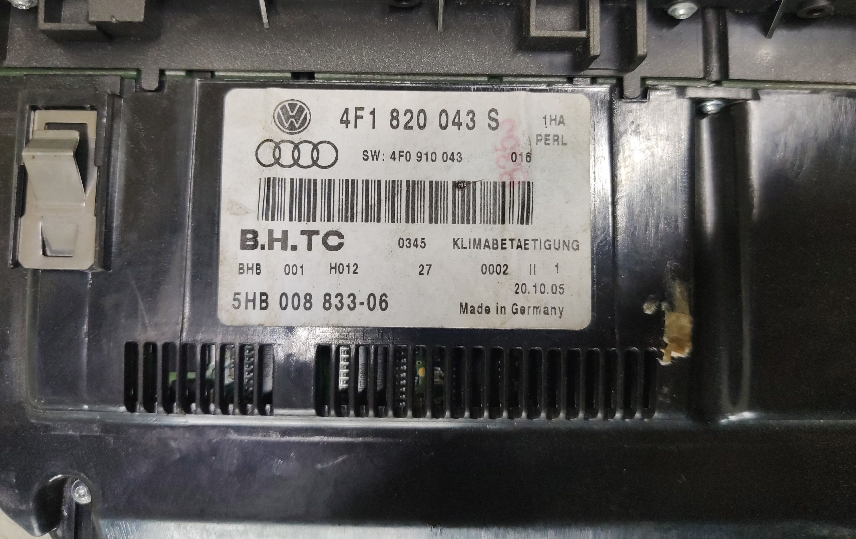 Блок управления климат-контролем 4F1820043S, 5HB00883306 Audi A6 S6 C6 4F