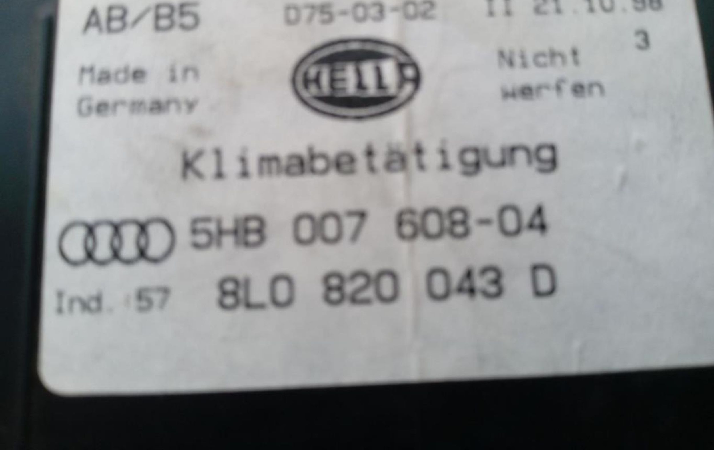 Блок управления климат-контролем 5HB00760804 Audi A3 S3 8L