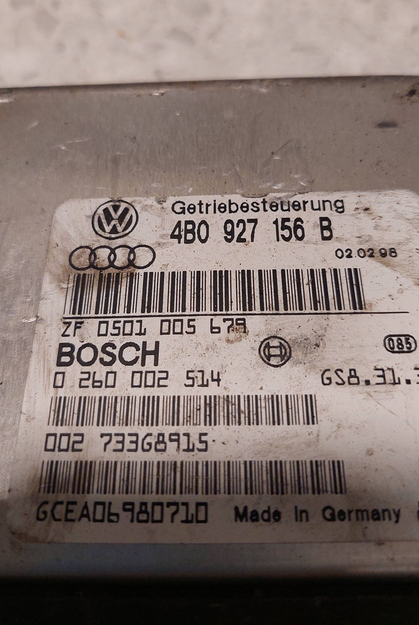 Блок управления коробкой передач 4B0927156B, 73368915 Audi A6 S6 C5 4B