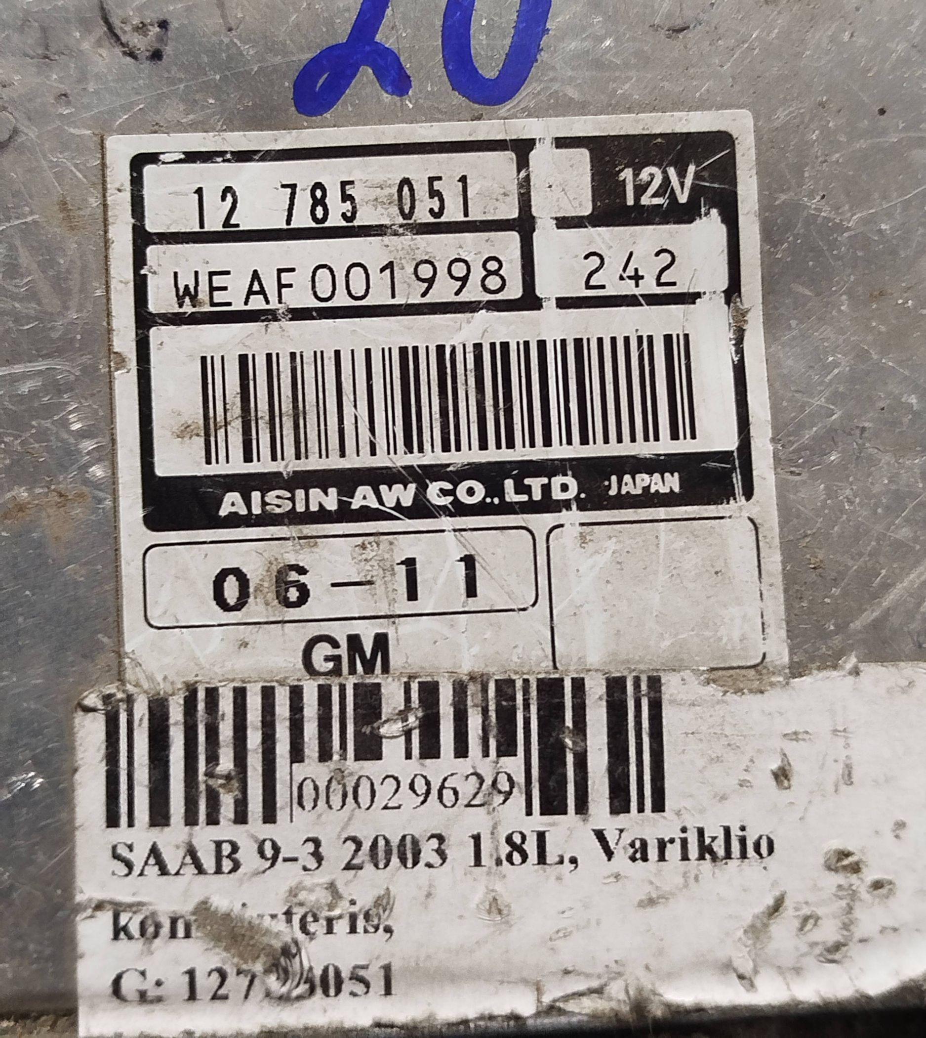 Блок управления коробкой передач 12785051, WEAF001998 Saab 9-3 Ver2