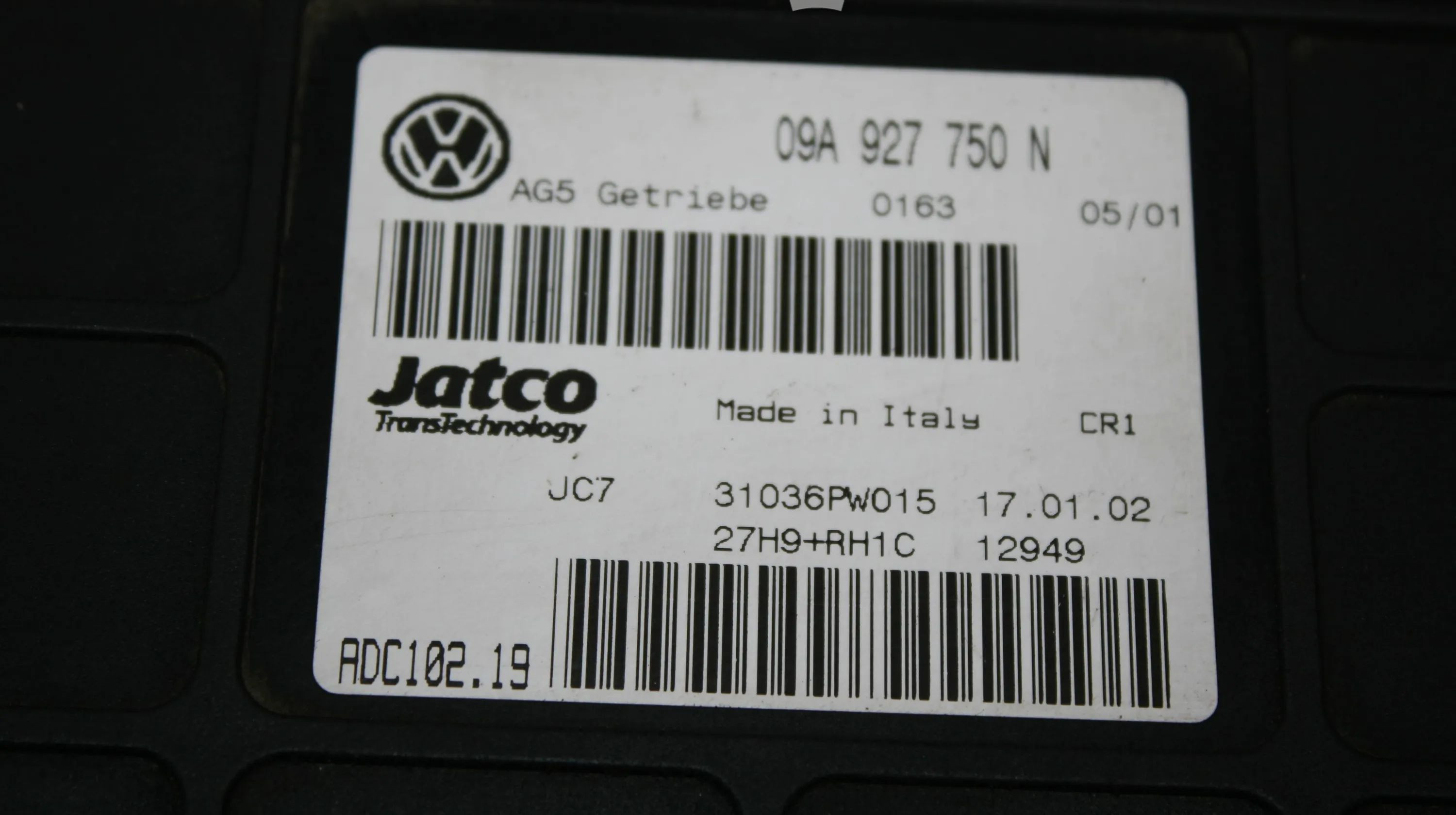Блок управления коробкой передач 09A927750N, 31036PW015 Volkswagen Bora