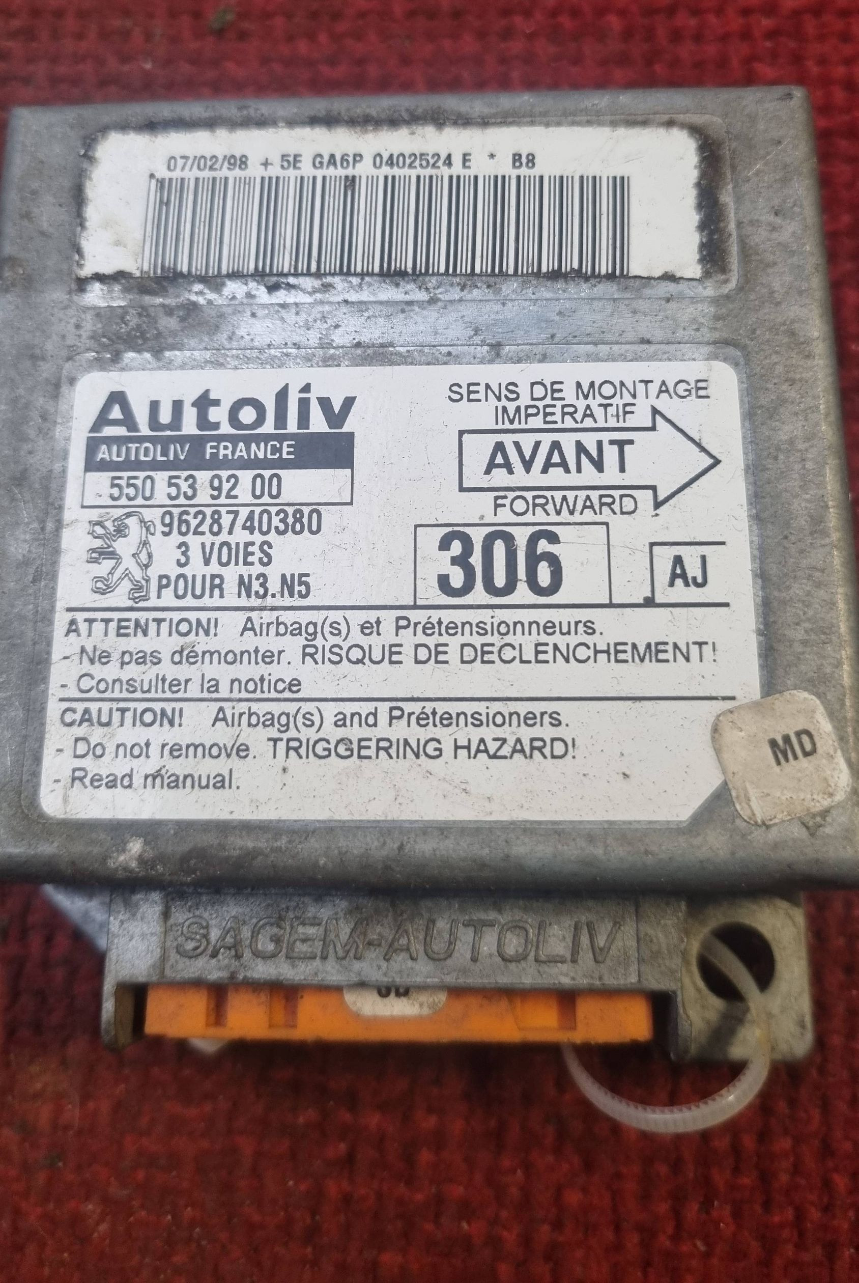 Блок подушек безопасности 550539200 Peugeot 306