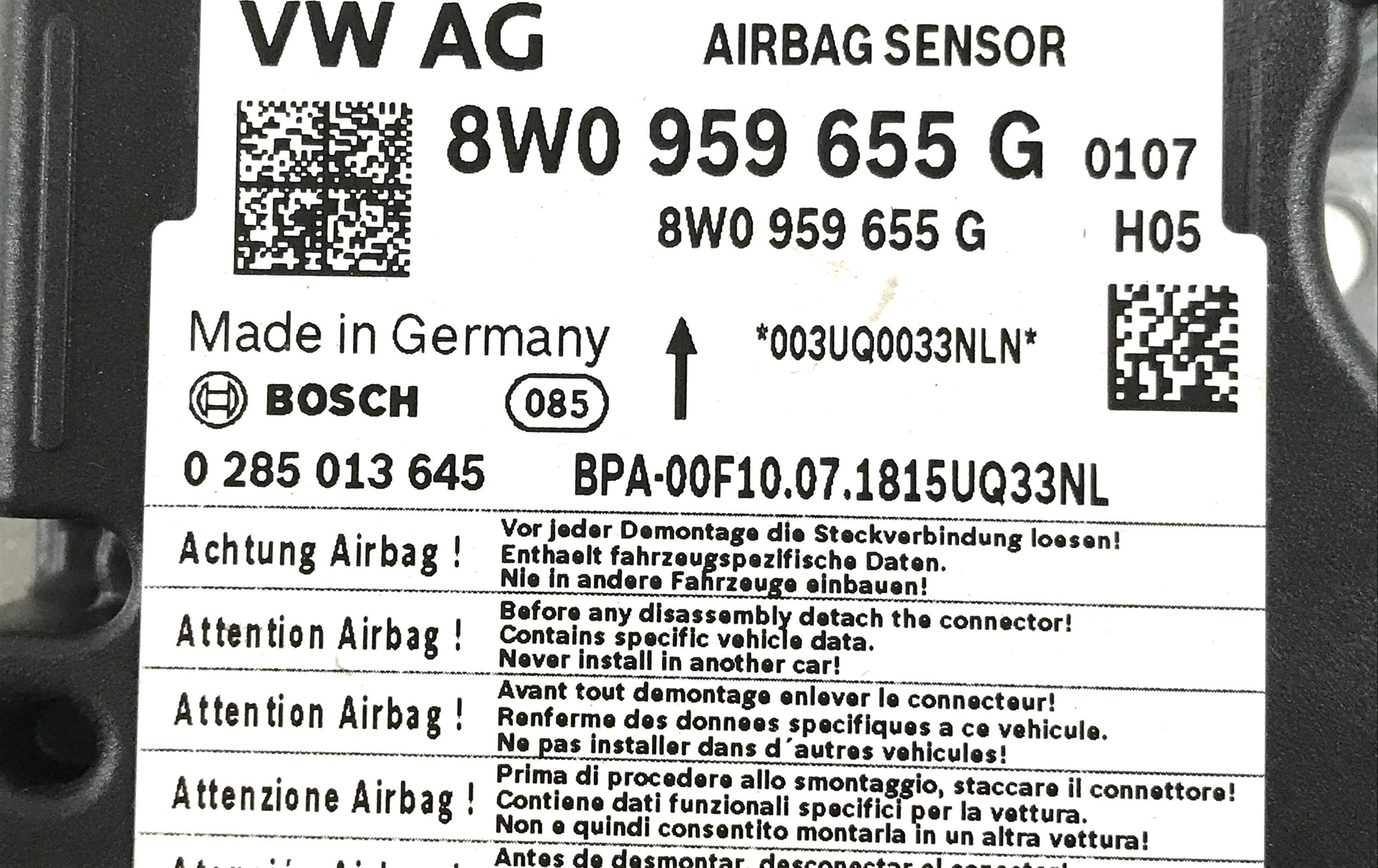 Блок подушек безопасности 8W0959655G, 0285013645 Audi A4 S4 B9