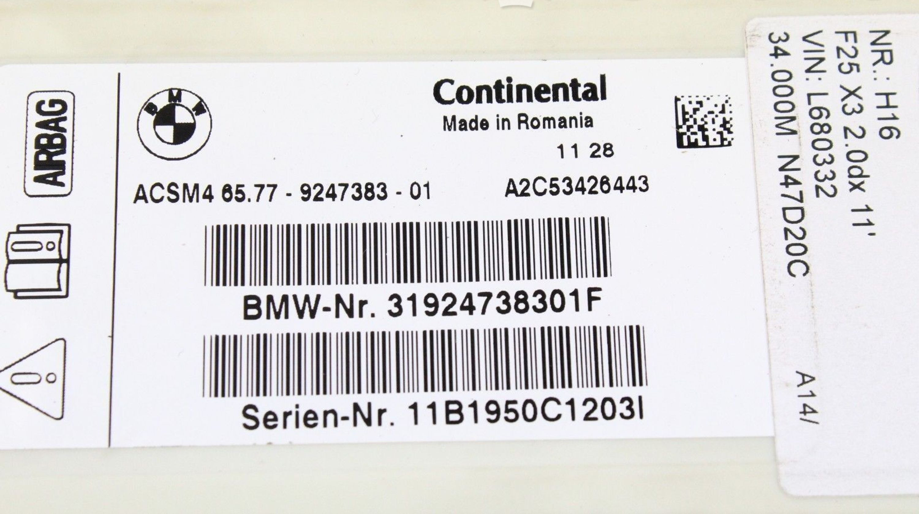Блок подушек безопасности 9247383 BMW X3 F25