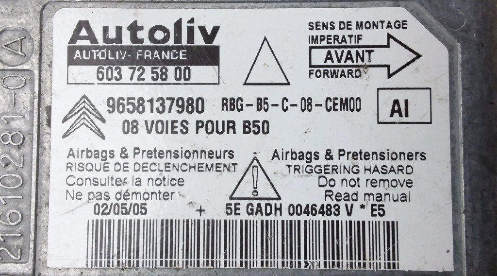 Блок подушек безопасности 603725800, 9658137980 Citroen C4 I