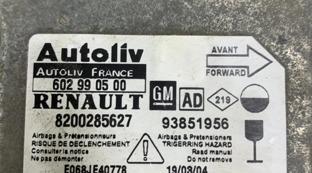 Блок подушек безопасности 93851956, 602990500 Opel Vivaro