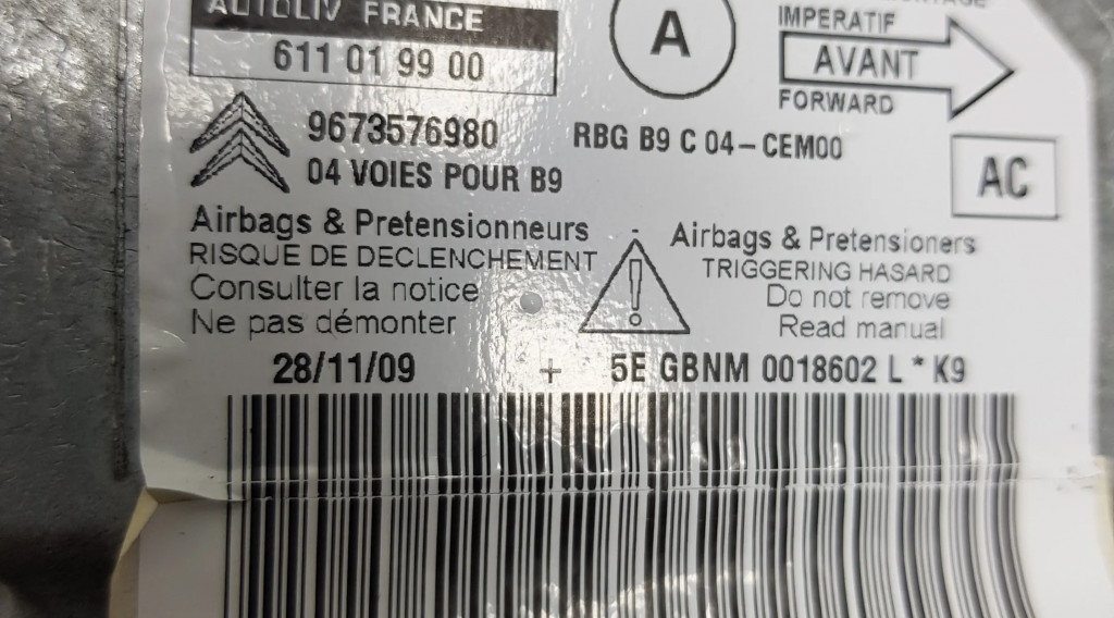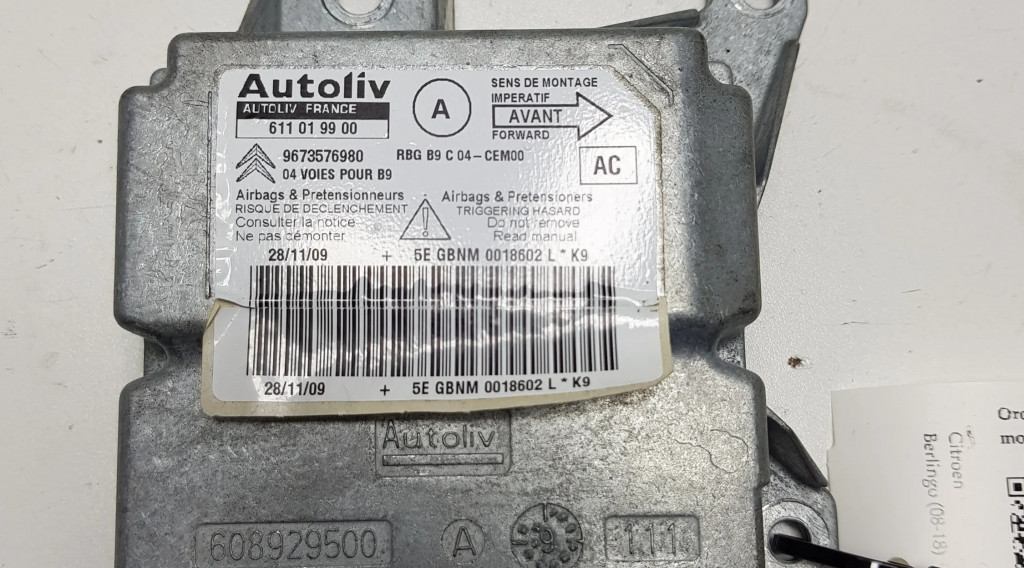 Блок подушек безопасности 611019900, 9673576980 Citroen Berlingo