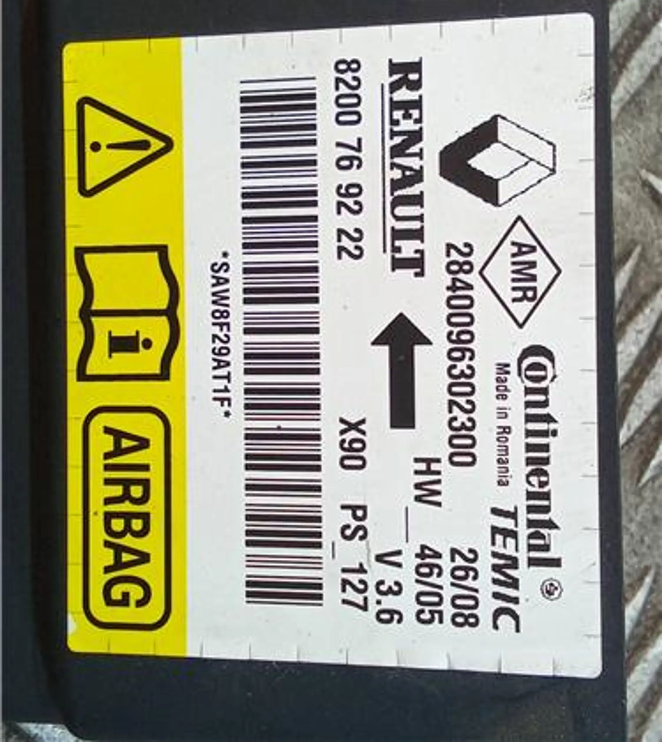 Translated: CENTRALITA AIRBAG MISCELLANEOUS Dacia Sandero I (06.2008->) 1.6 ambiance [1,6 Ltr. - 64 kW CAT] K7M F7 .