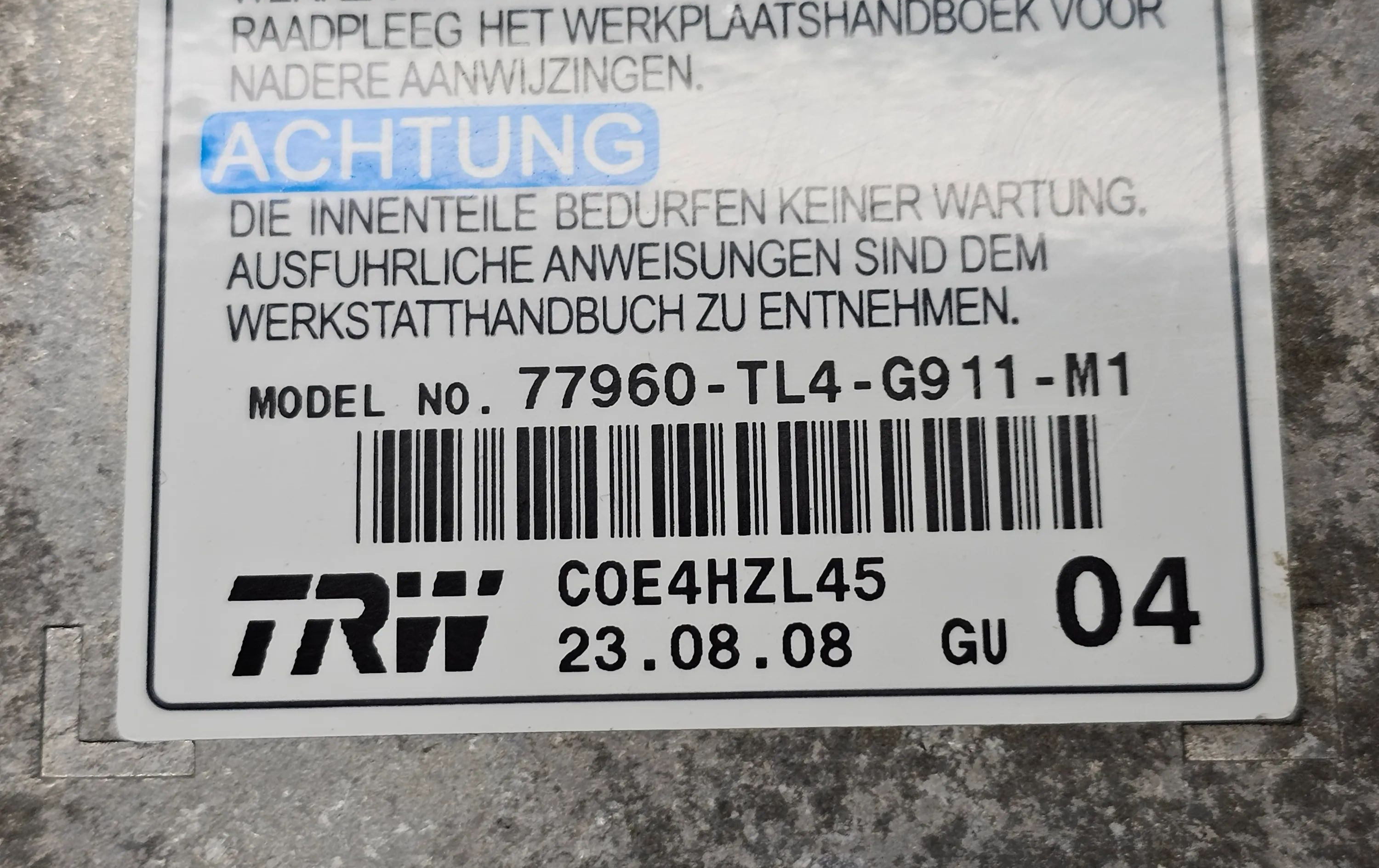 Блок подушек безопасности 77960TL4G911M1 Honda Accord