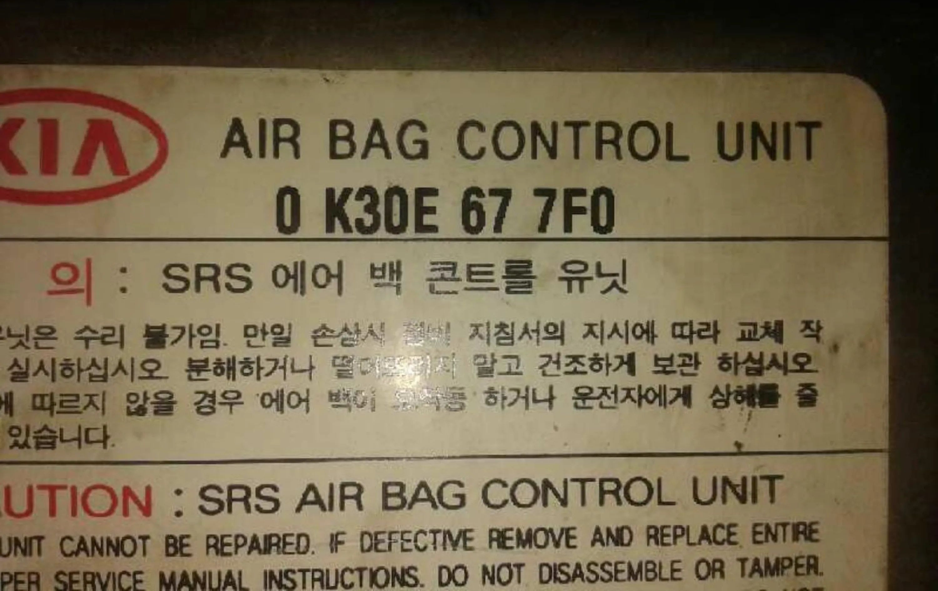 Блок подушек безопасности 0K30E677F0, CENTRALITAAIRBAG KIA Rio
