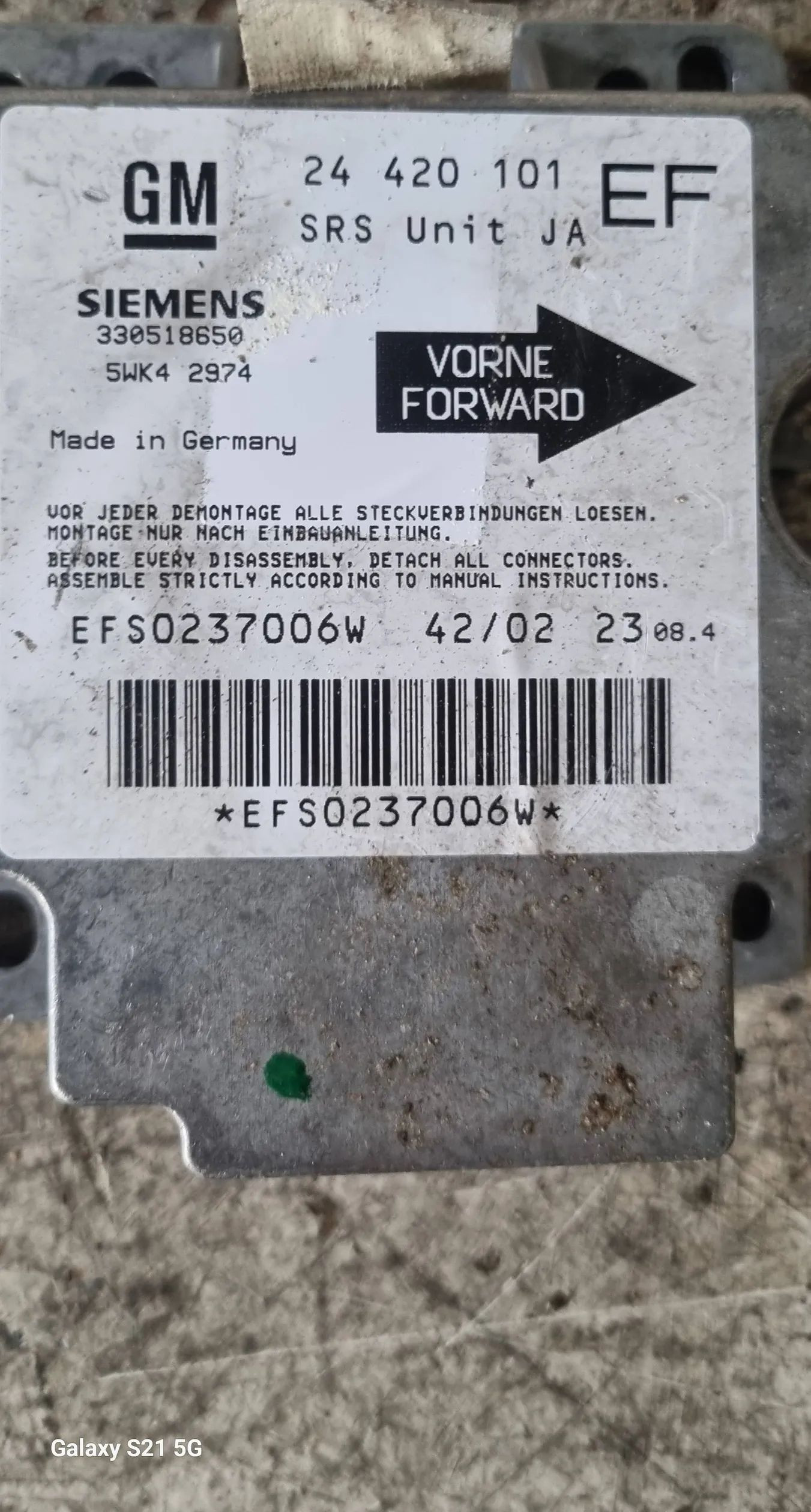 Блок подушек безопасности 24420101, EFS0237006W Opel Omega A