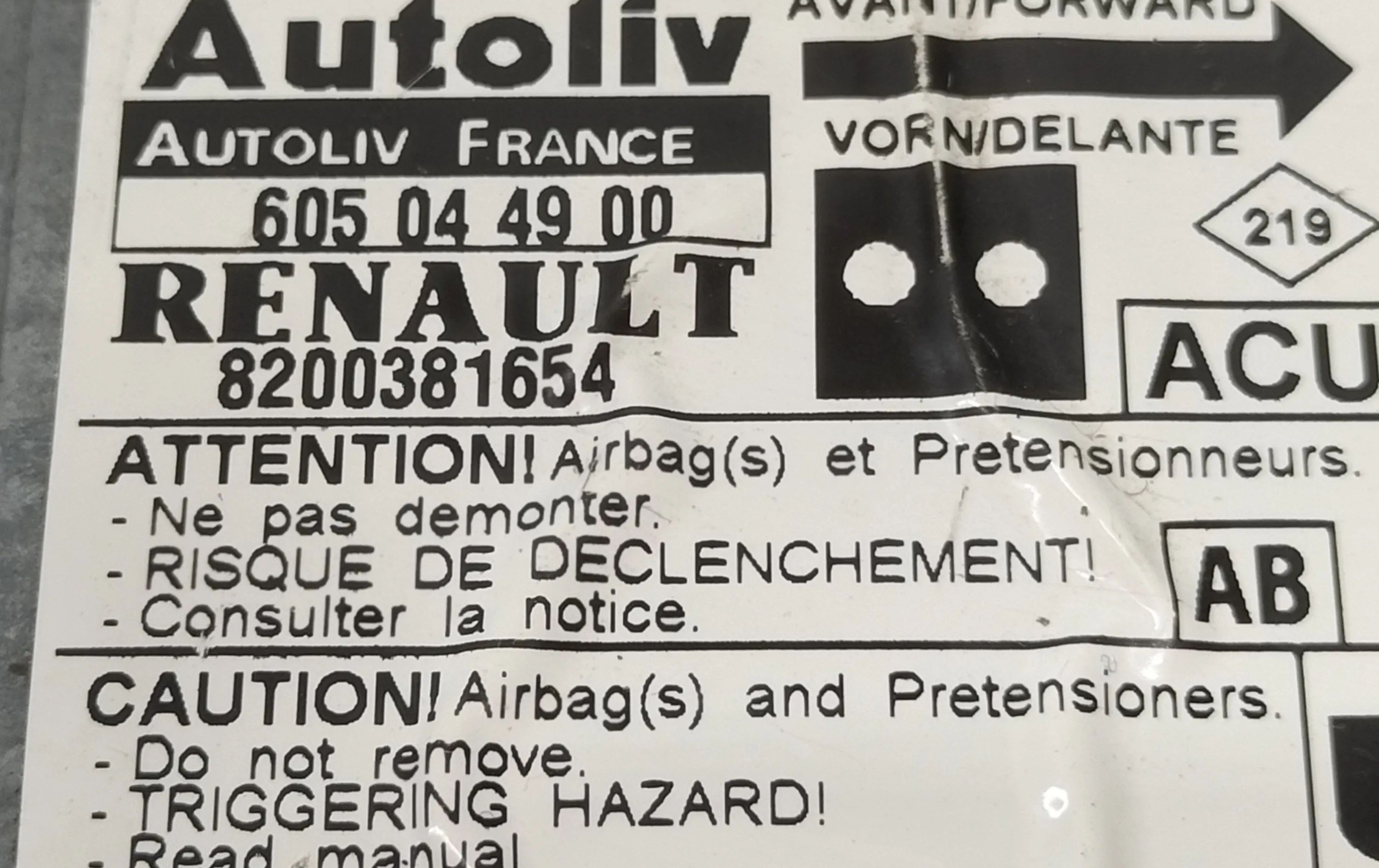 Блок подушек безопасности 605044900 Nissan Kubistar