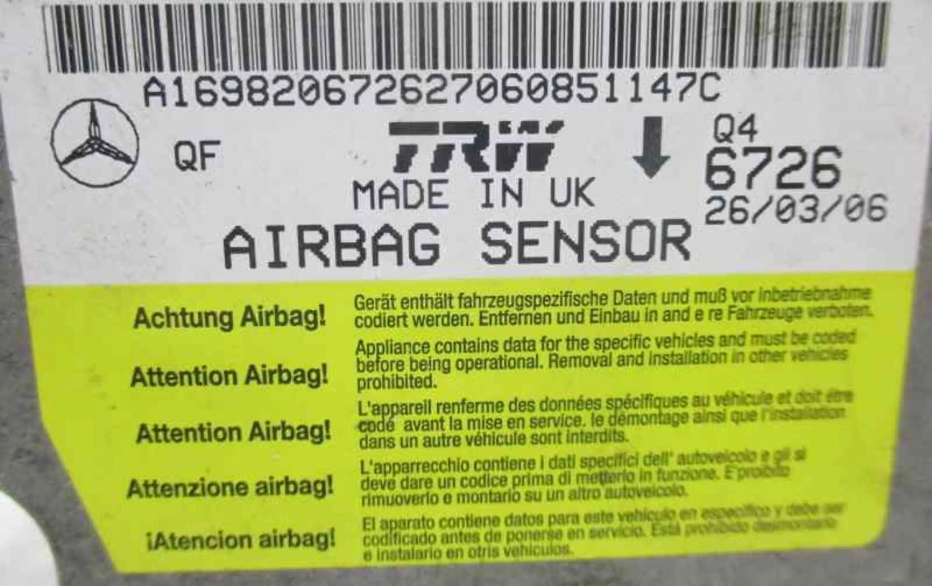 Блок подушек безопасности A1698206726 Mercedes-Benz A W169