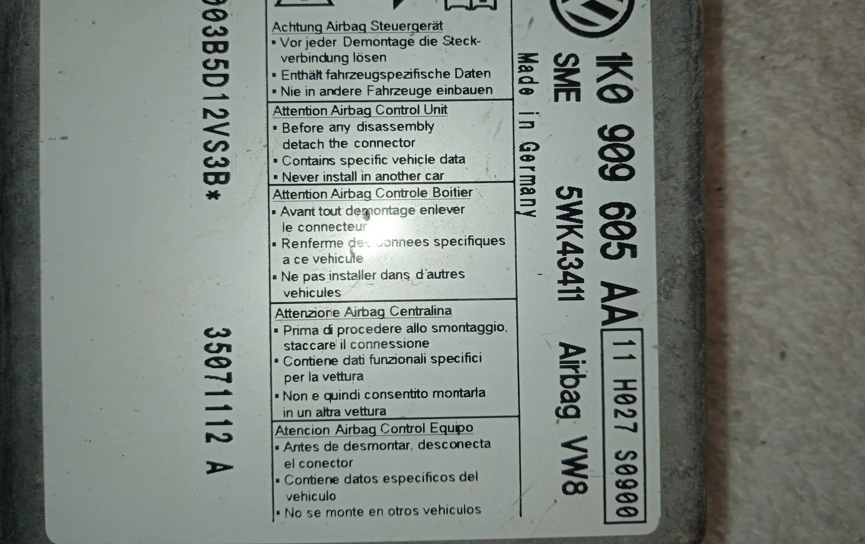- Код производителя: 1K0909605AA