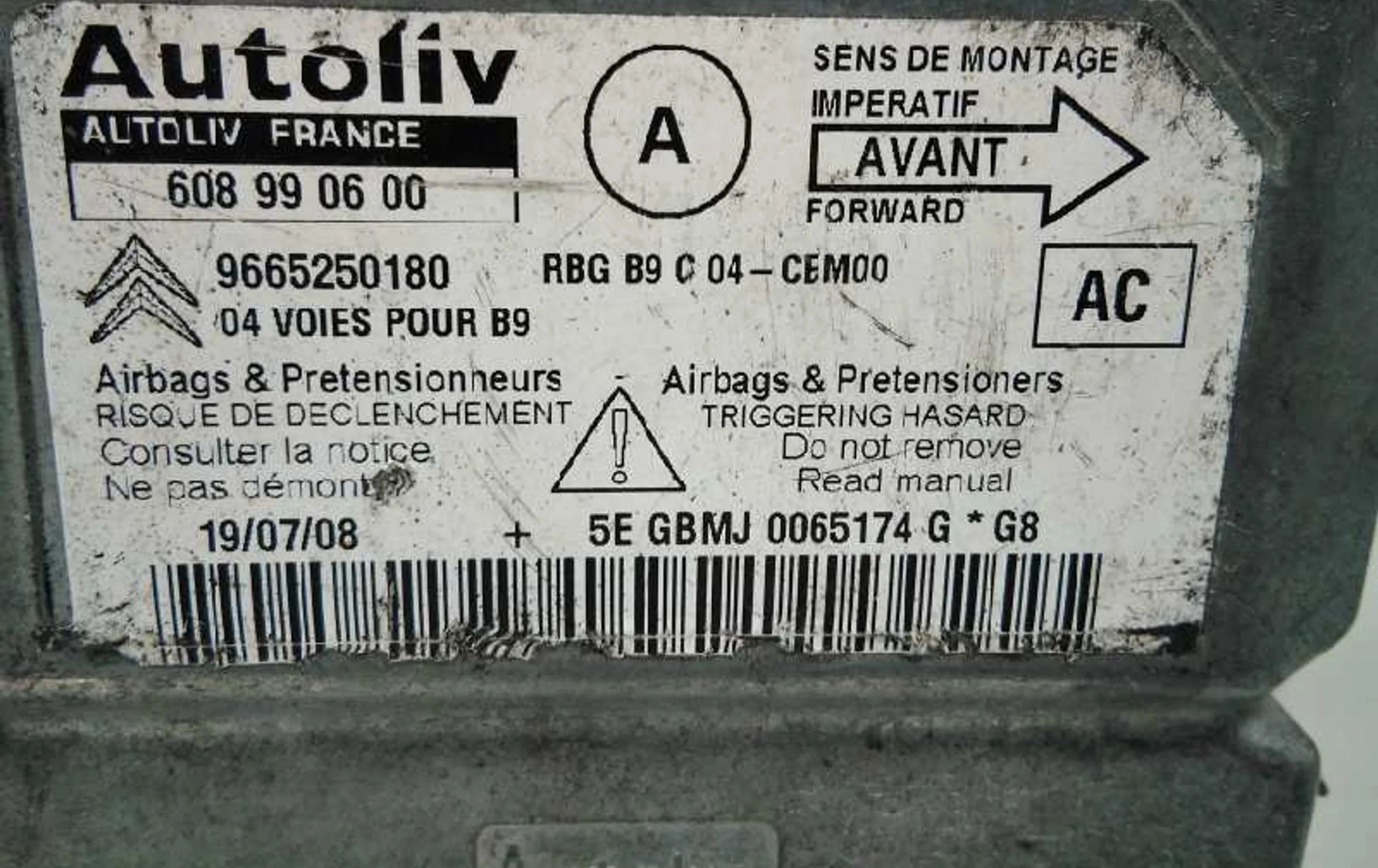 Блок подушек безопасности 9665250180, 48815 Citroen Berlingo