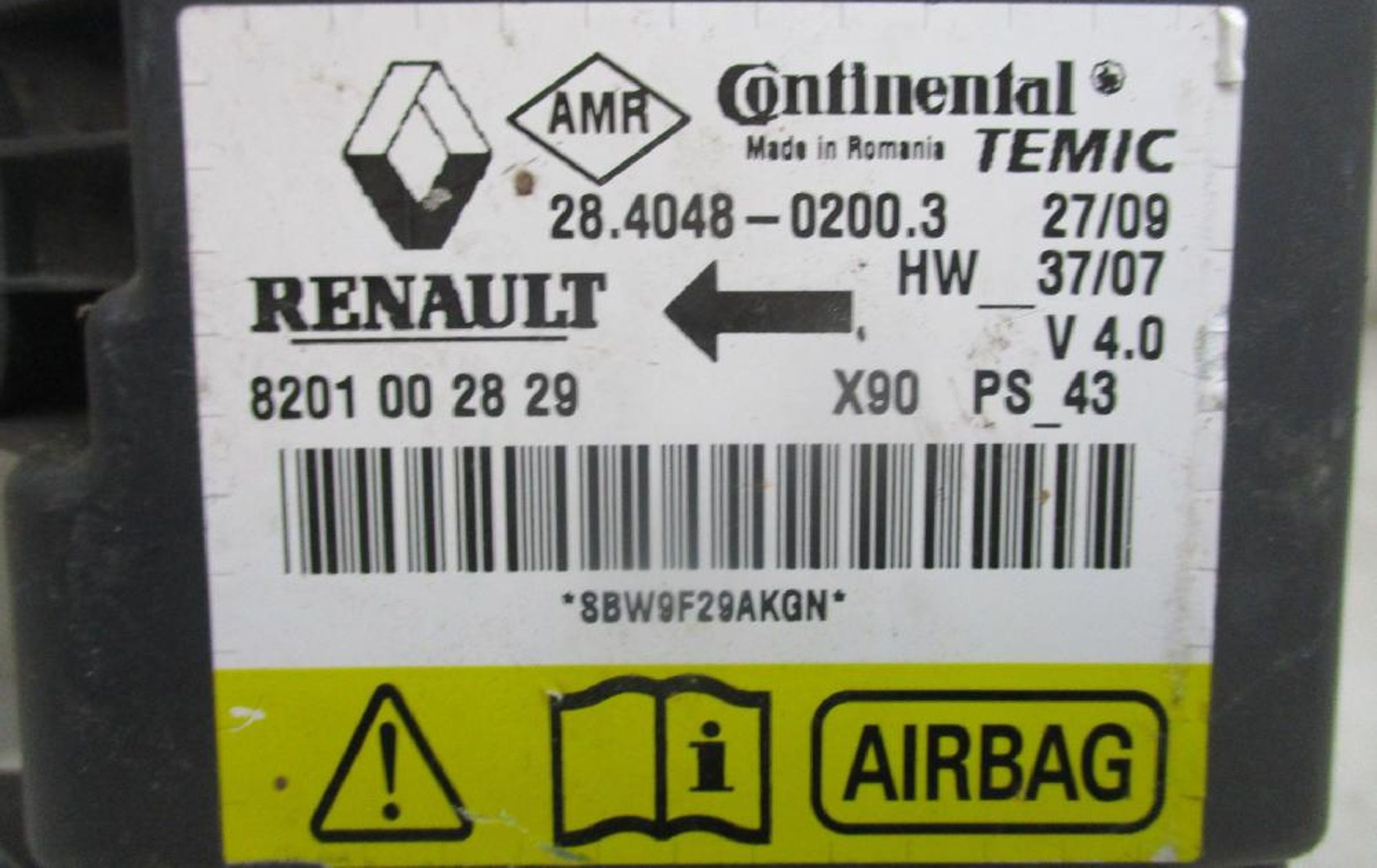 Блок подушек безопасности 8201163282, 8201163282 Dacia Sandero