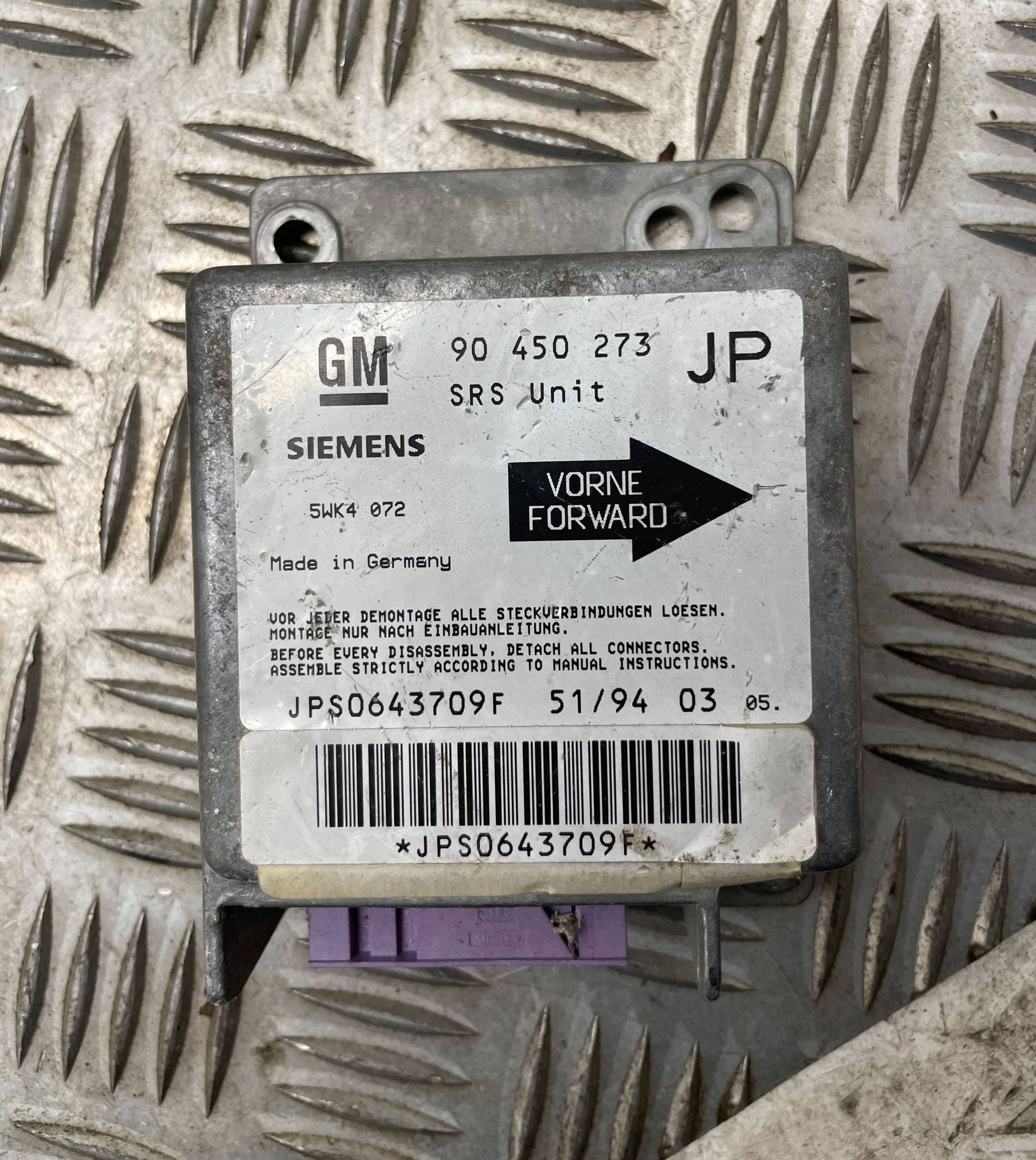 Блок подушек безопасности 90450273, JPS0643709F Opel Astra F