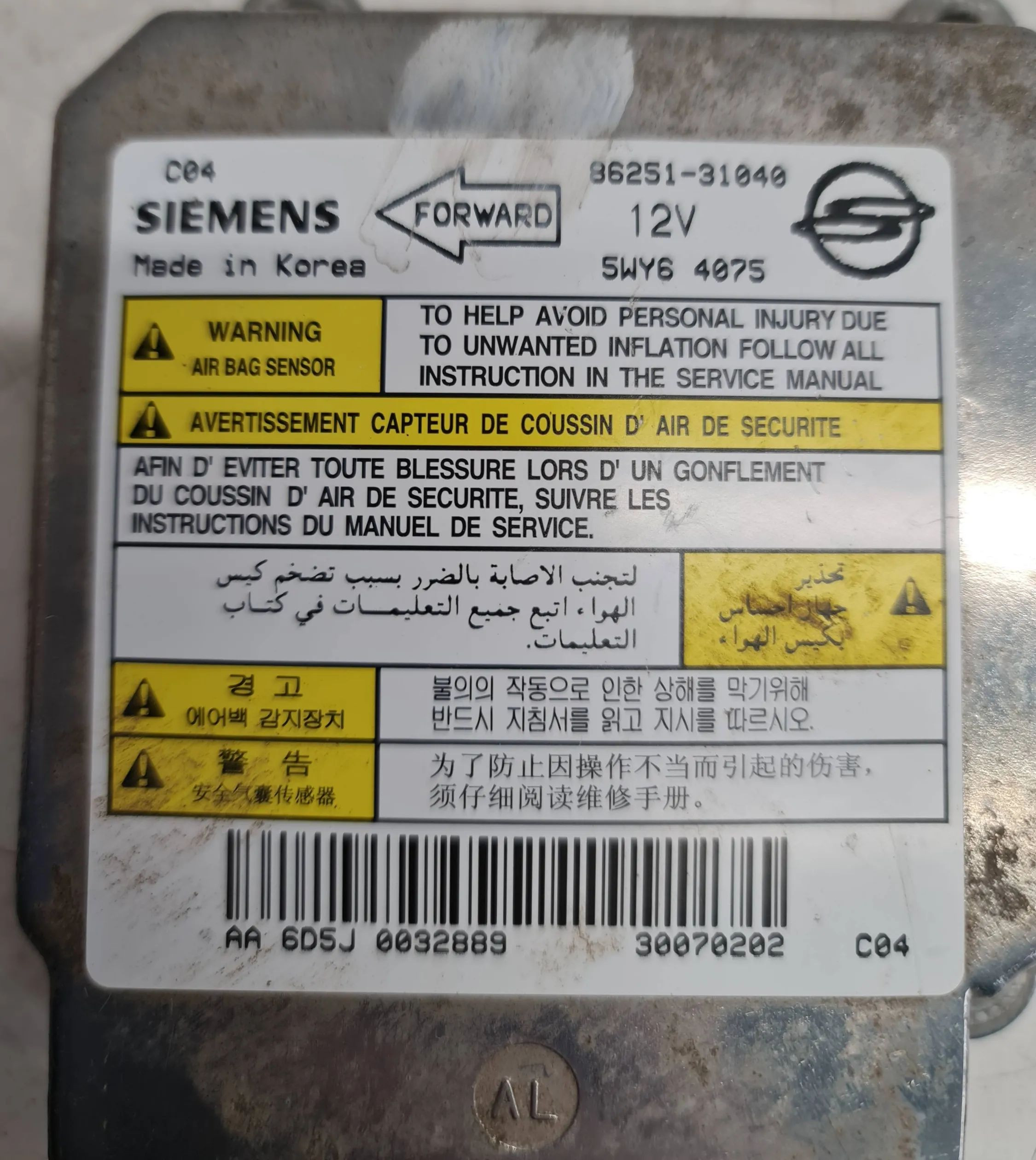 Блок управления надувных подушек 8625131040, 5WY64075 SsangYong Actyon