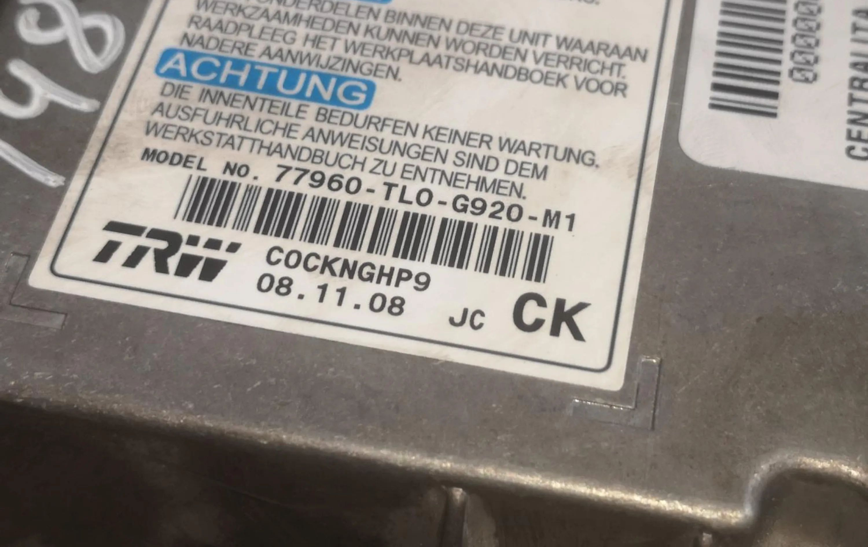 Блок подушек безопасности SLV77960TL0G920M1 Honda Accord