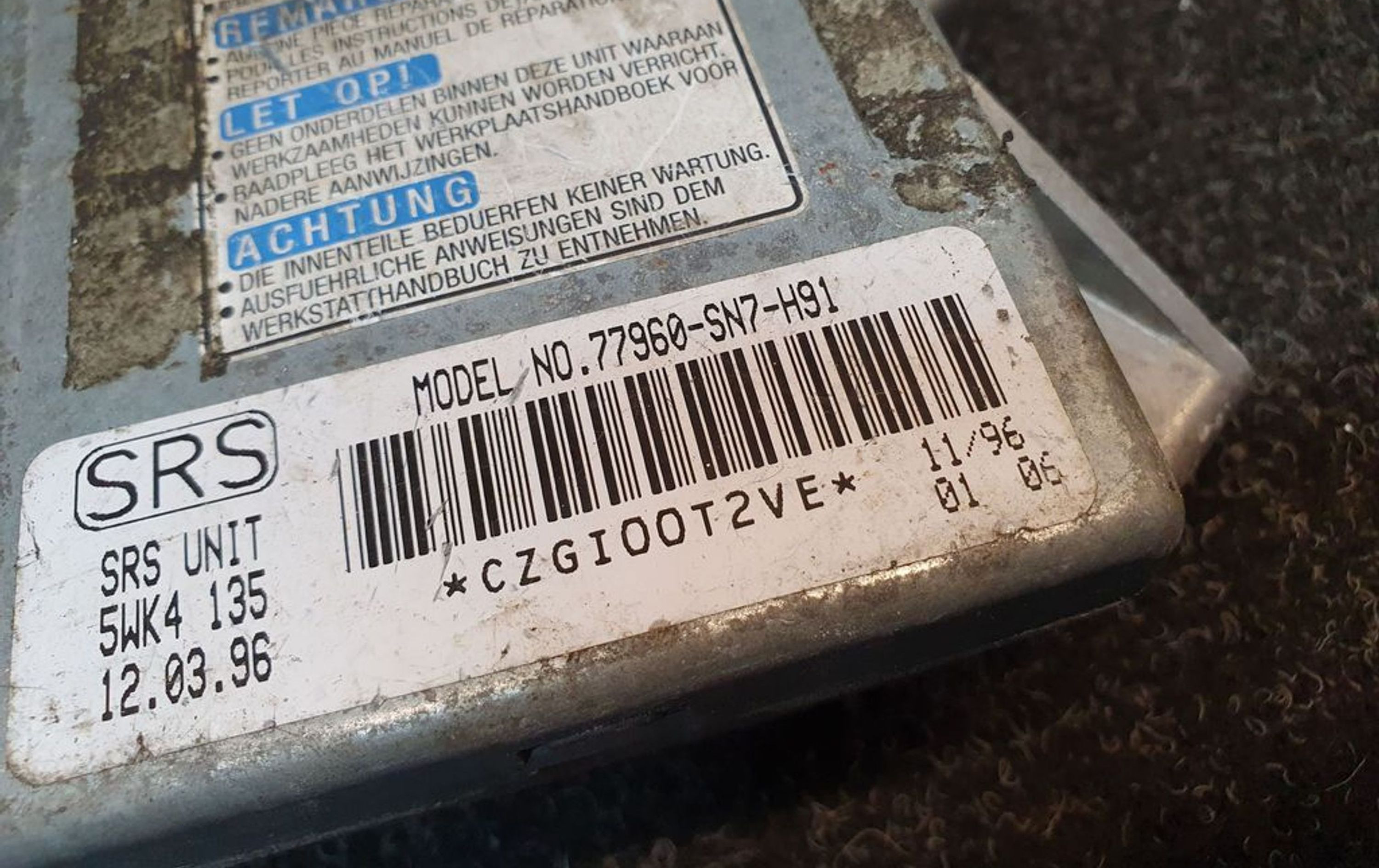Блок подушек безопасности 77960SN7H91, 5WK4135 Honda Accord