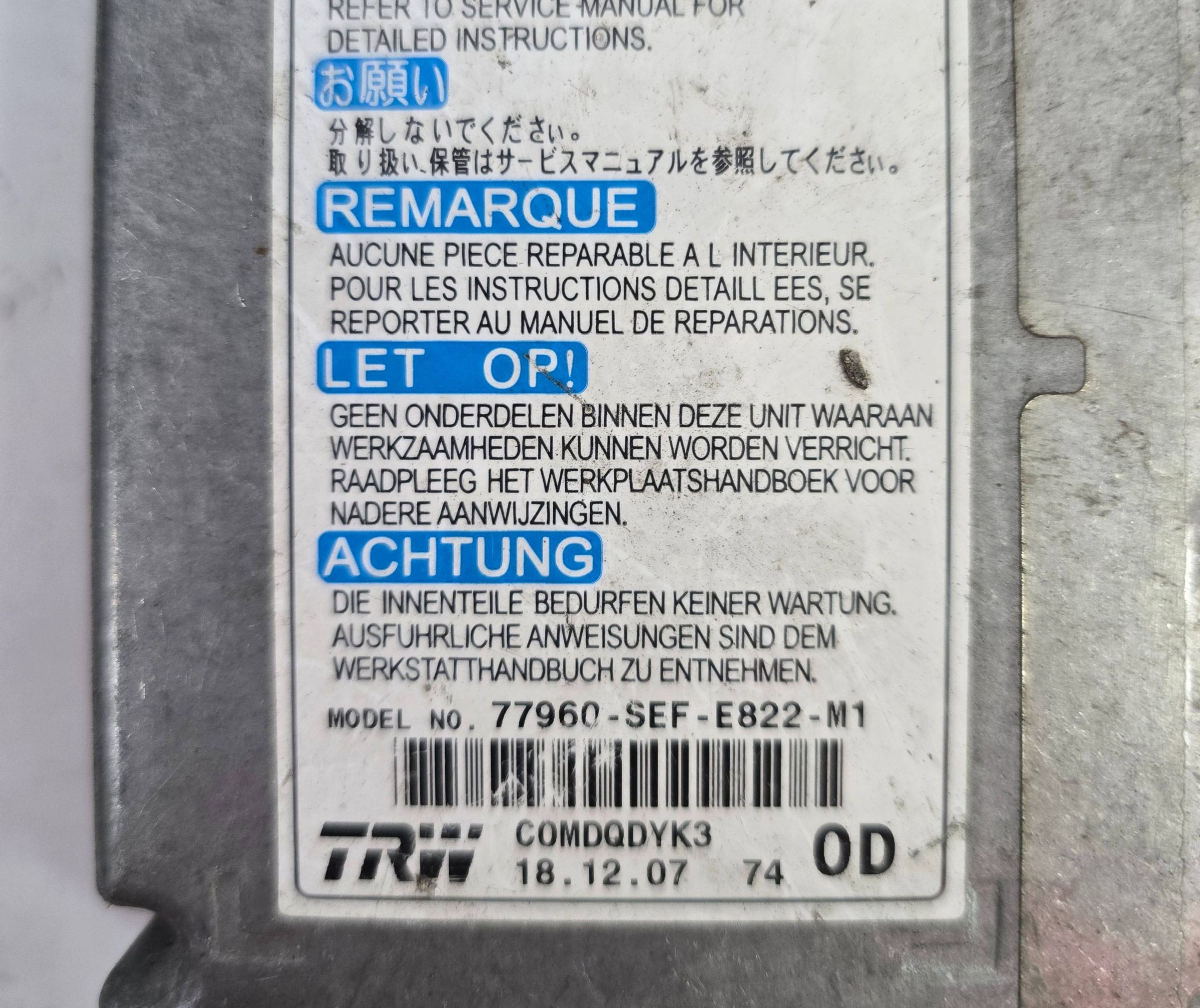 Блок подушек безопасности 77960SEFE822M1 Honda Accord