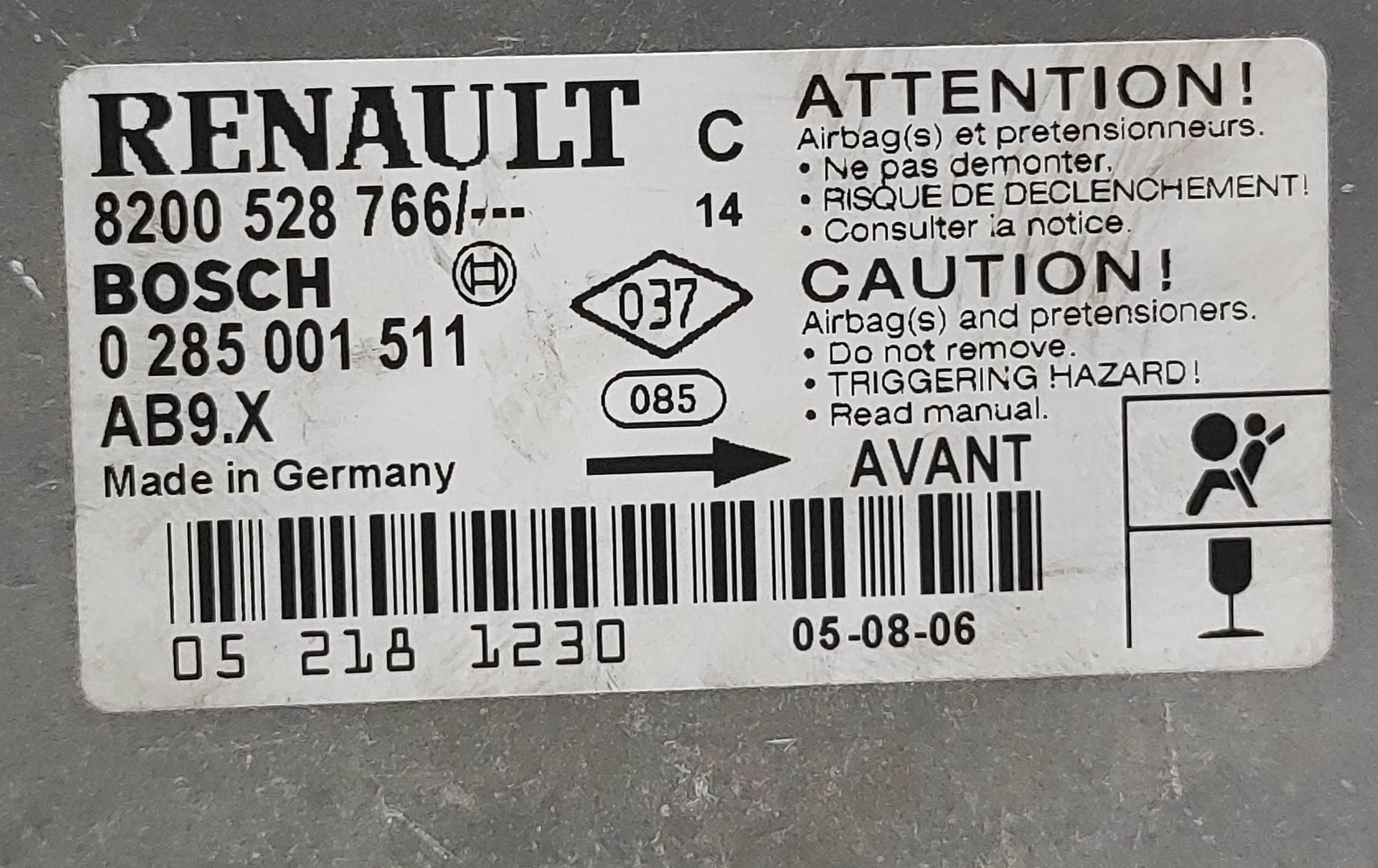 Блок подушек безопасности 8200528766, 0285001511 Renault Clio II