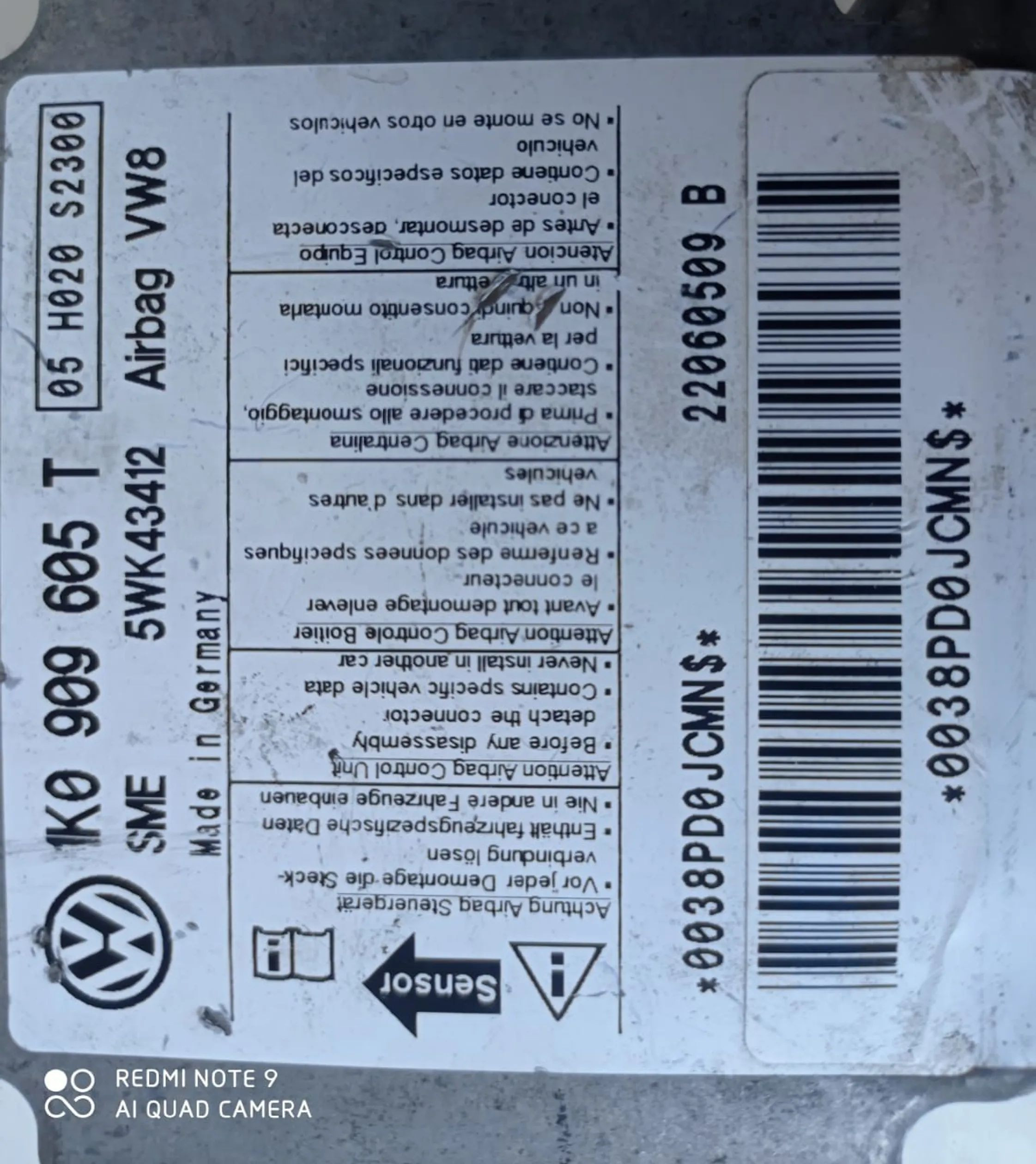 Блок подушек безопасности 1K0909605T, 1K0909605T Volkswagen Golf Plus