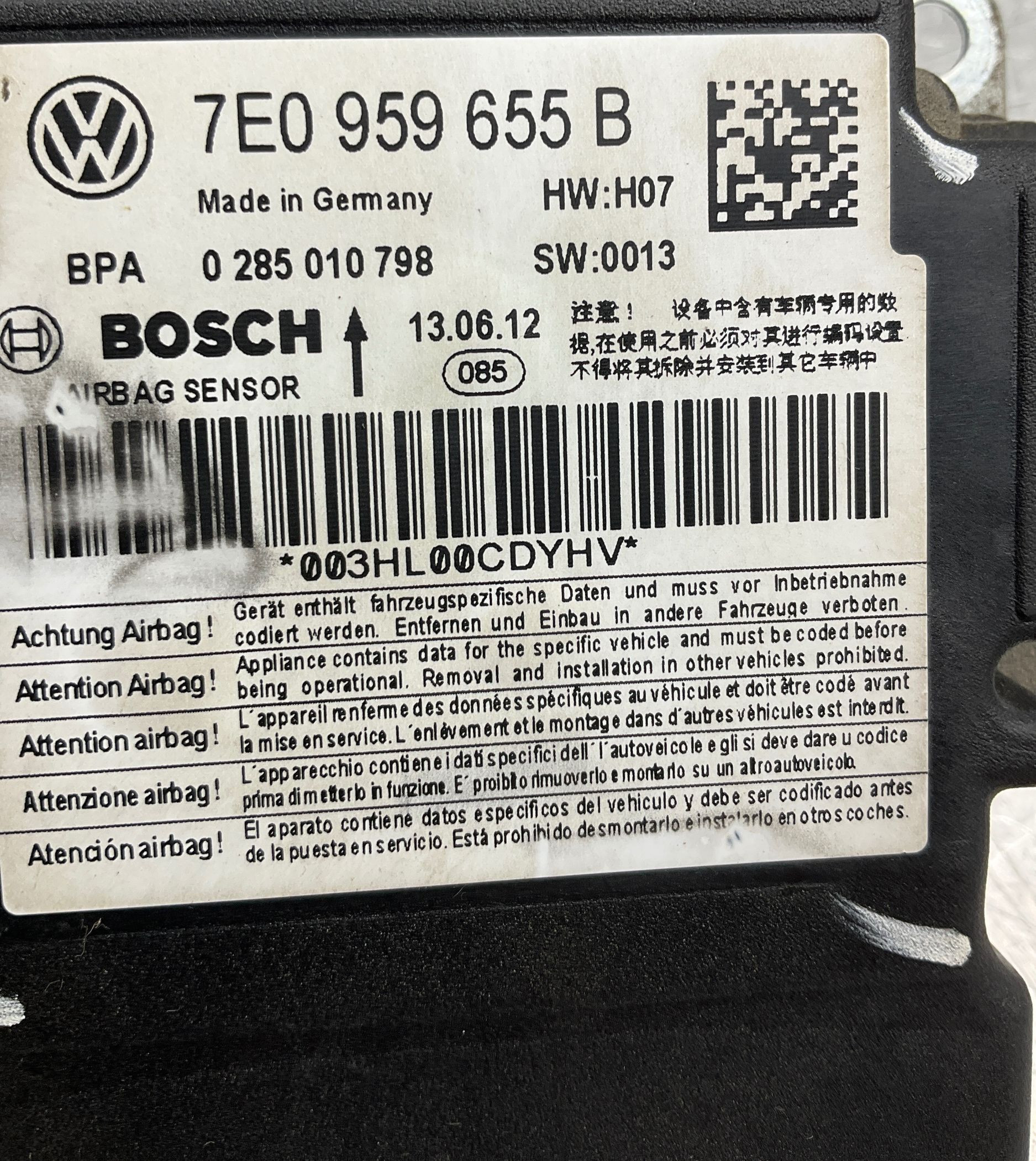 Блок подушек безопасности 7E0959655B, 0285010798 Volkswagen Caddy