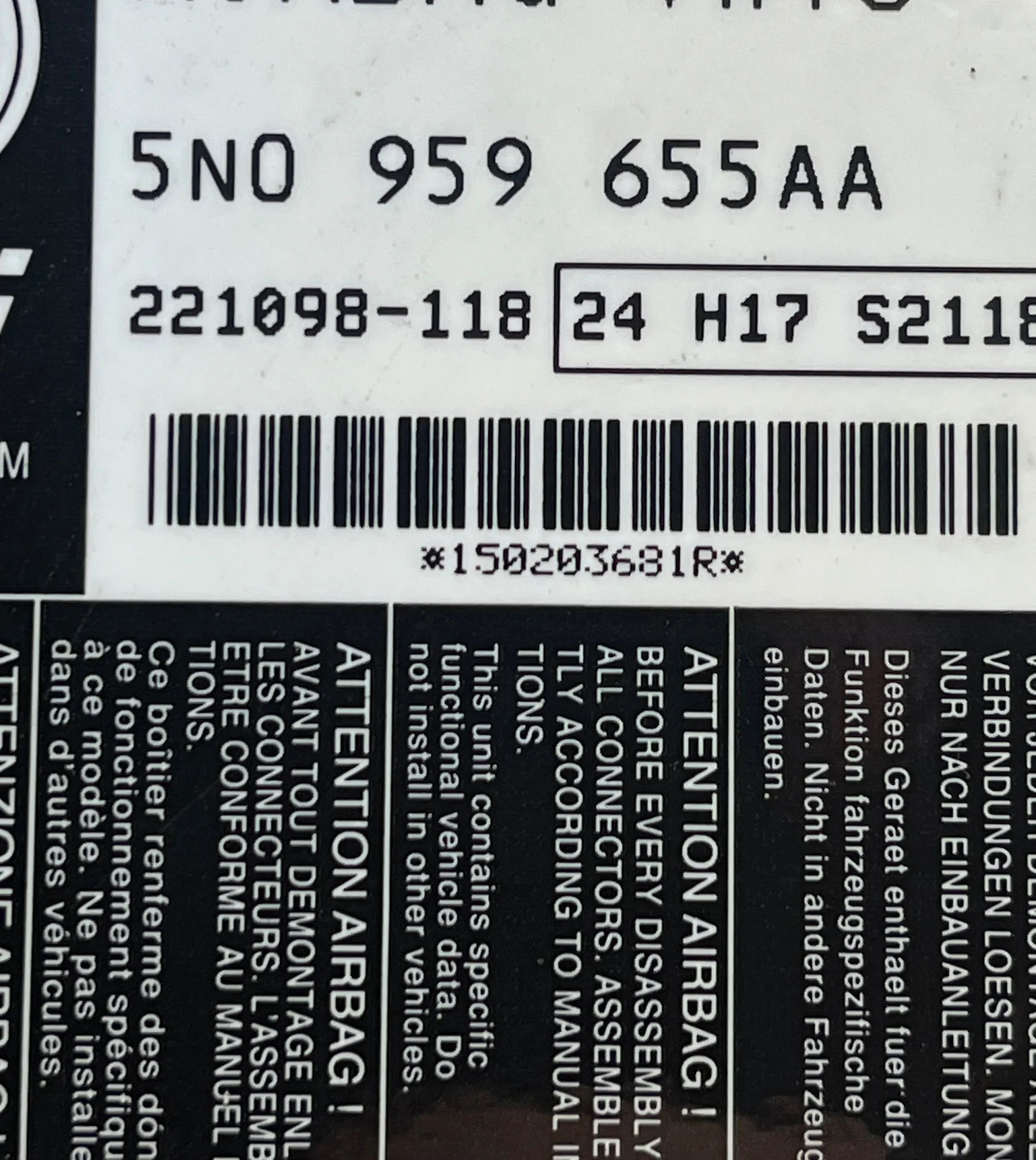 - Код производителя: 5N0959655AA